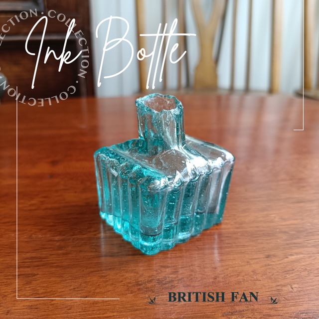 インク瓶 インクボトル 四角形 アンティーク ガラス 英国 2503T2②