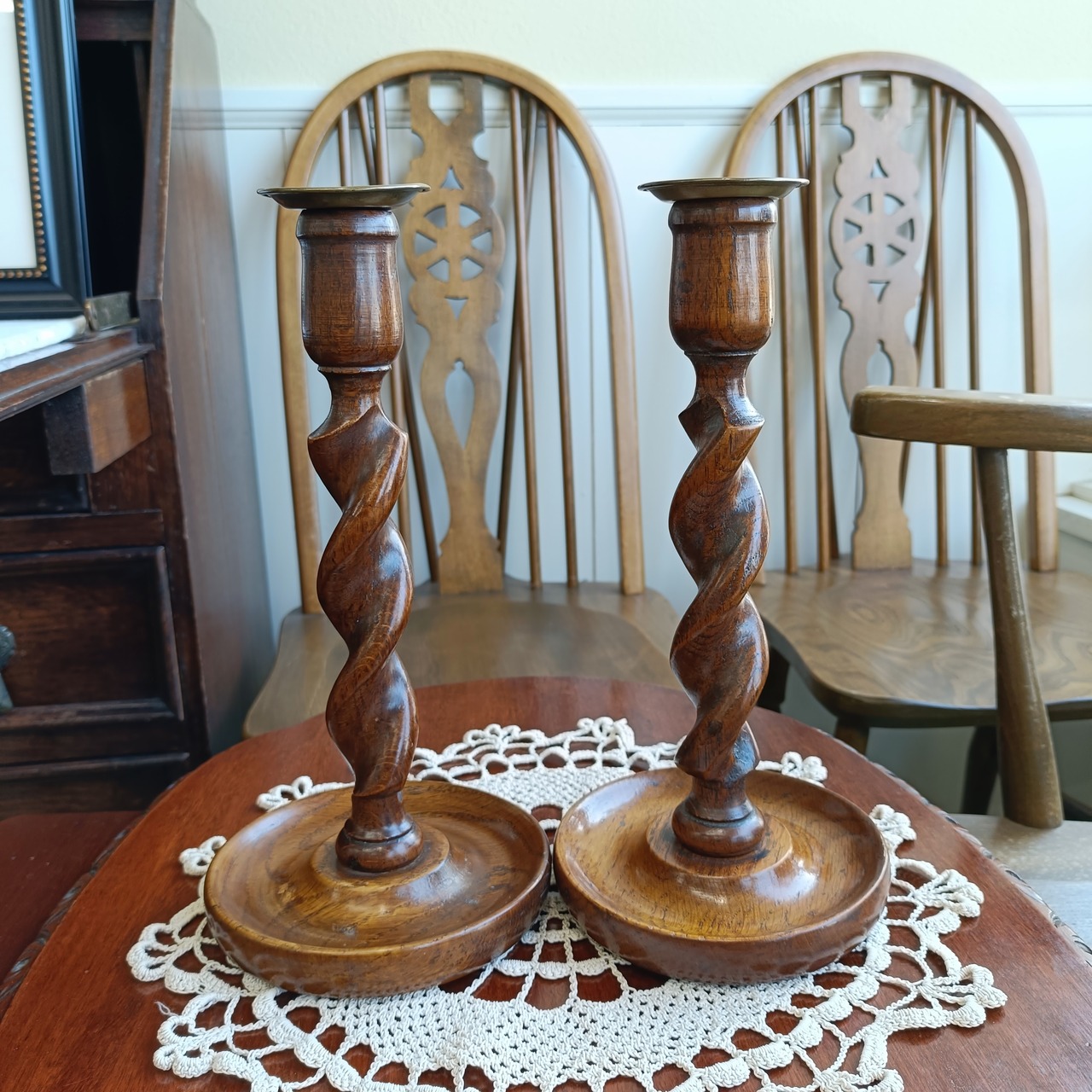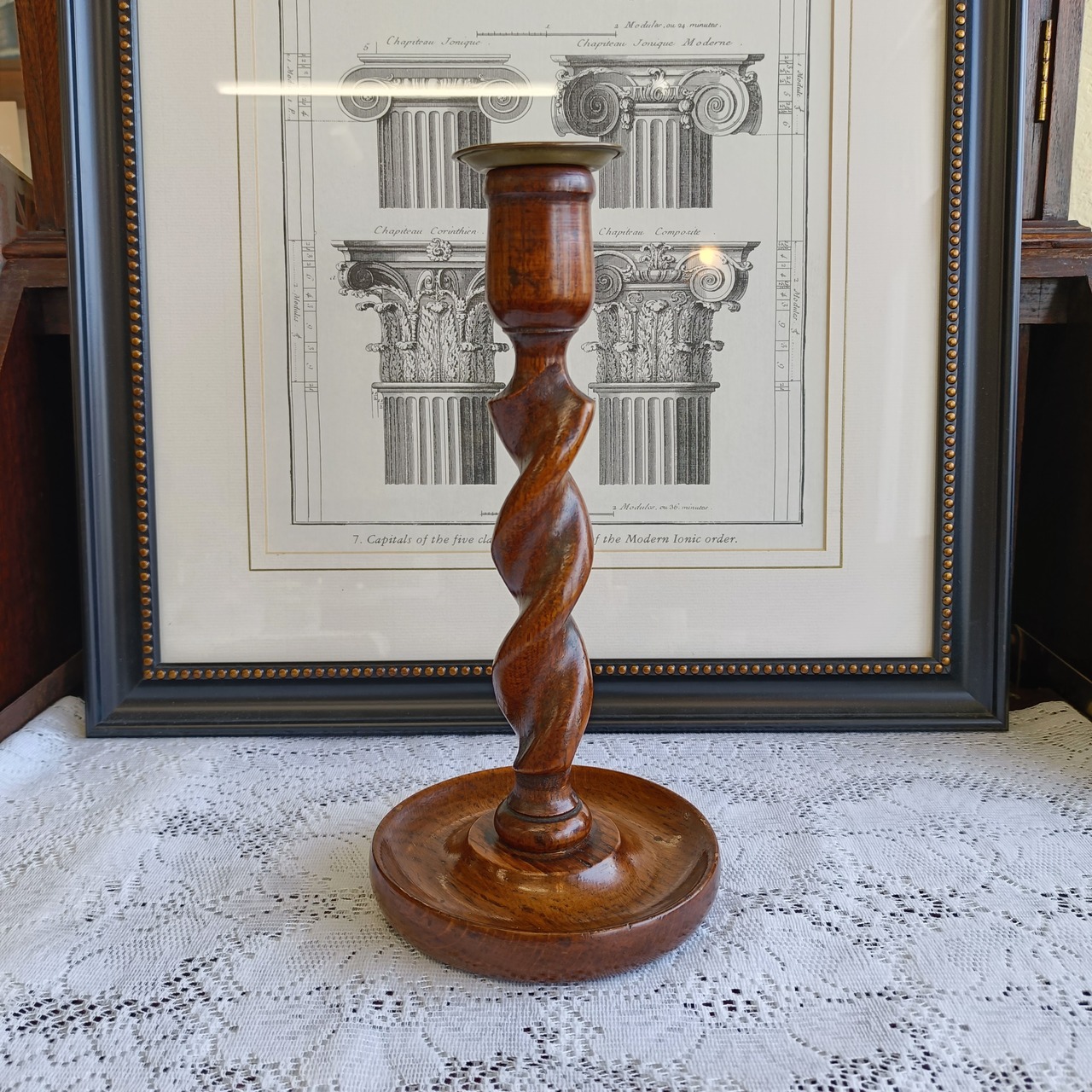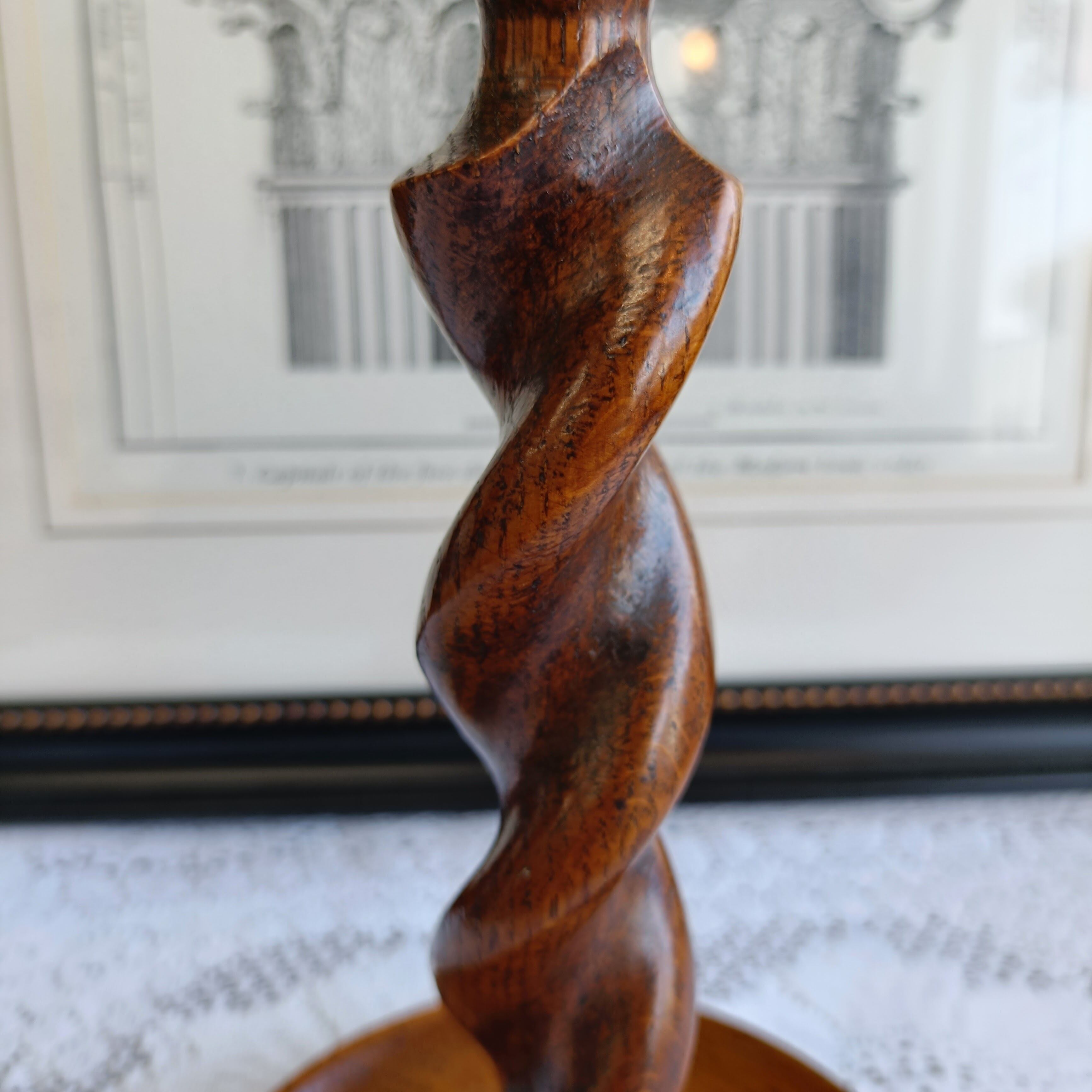 英国伝統のツイストデザインが美しいオーク材のキャンドルスタンド。