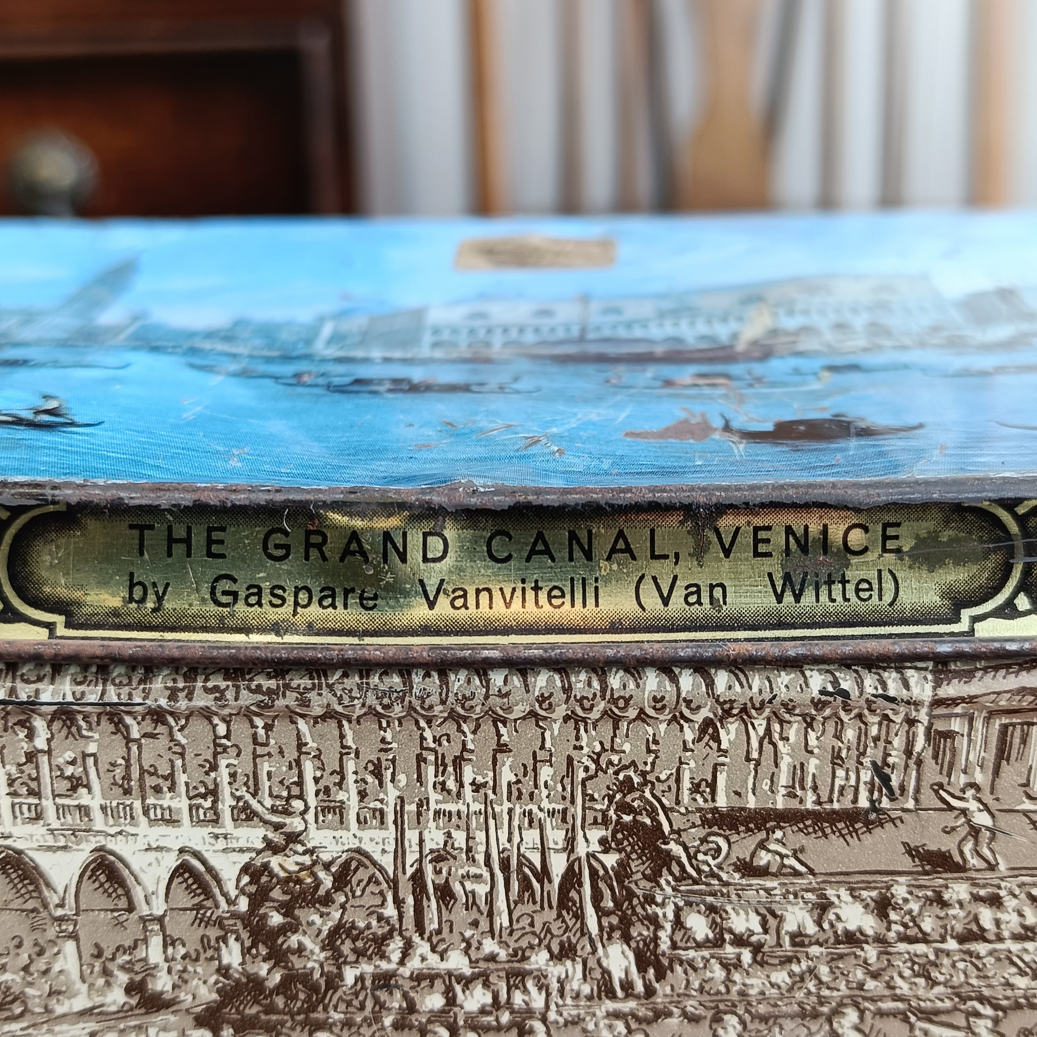 「サンマルコ湾からのピアツェッタの眺め」がプリントされたTin缶。