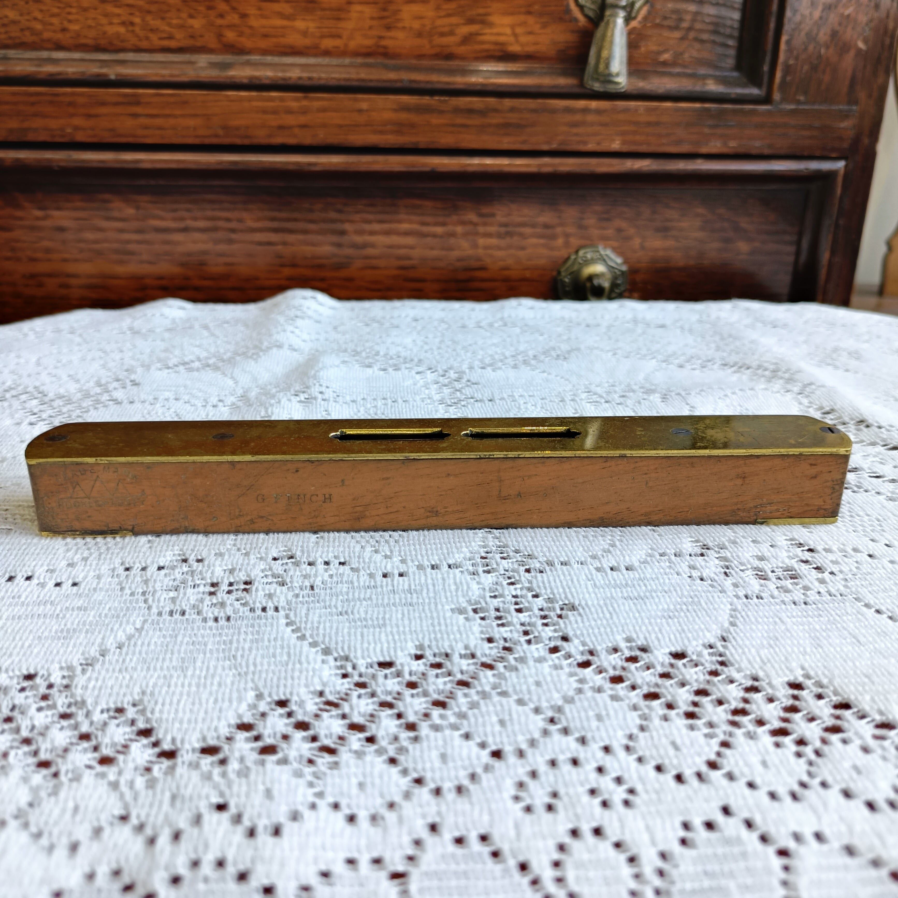 真鍮のプレートと木製ボディを組み合わせた水平器です。