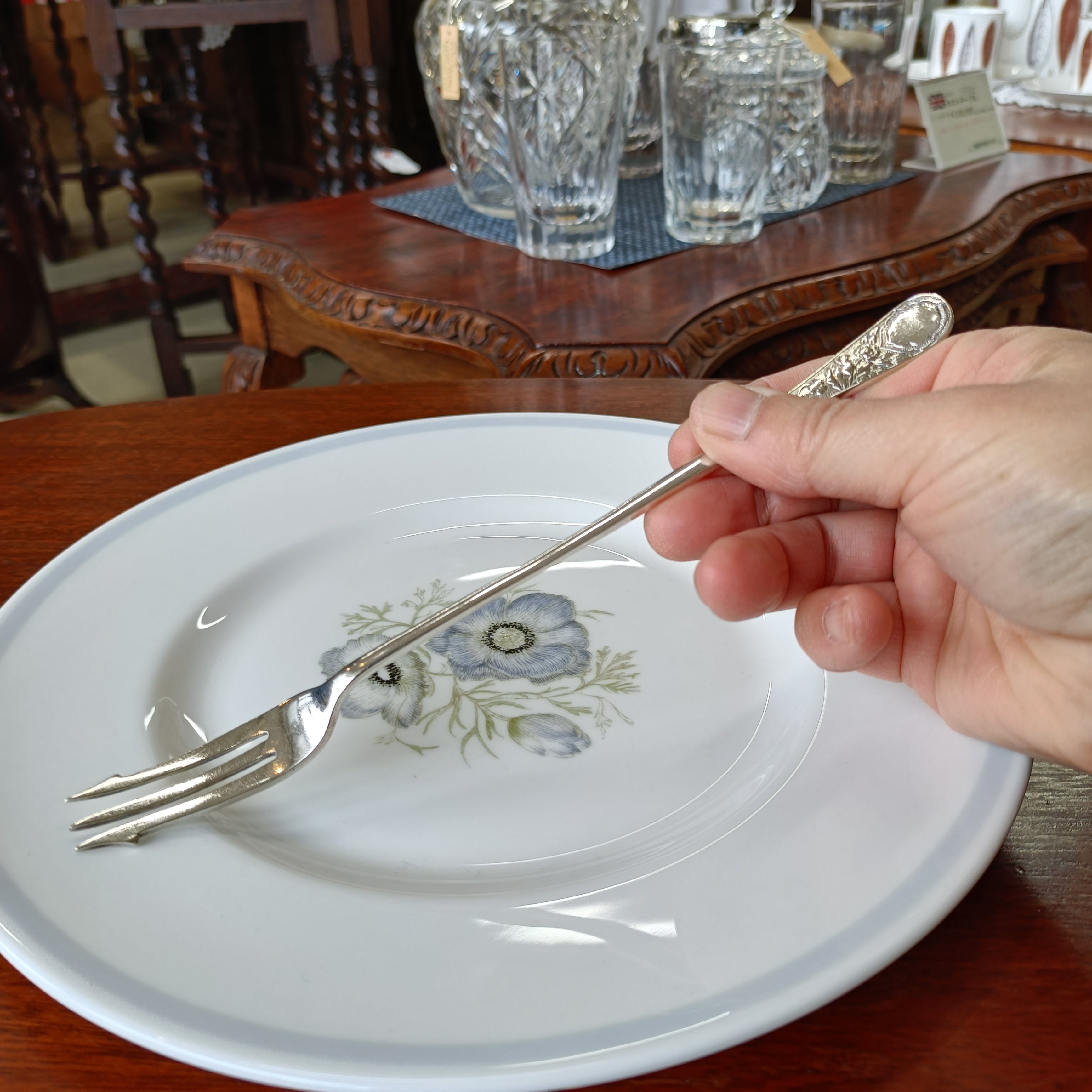 シルバープレートのピクルスフォーク。