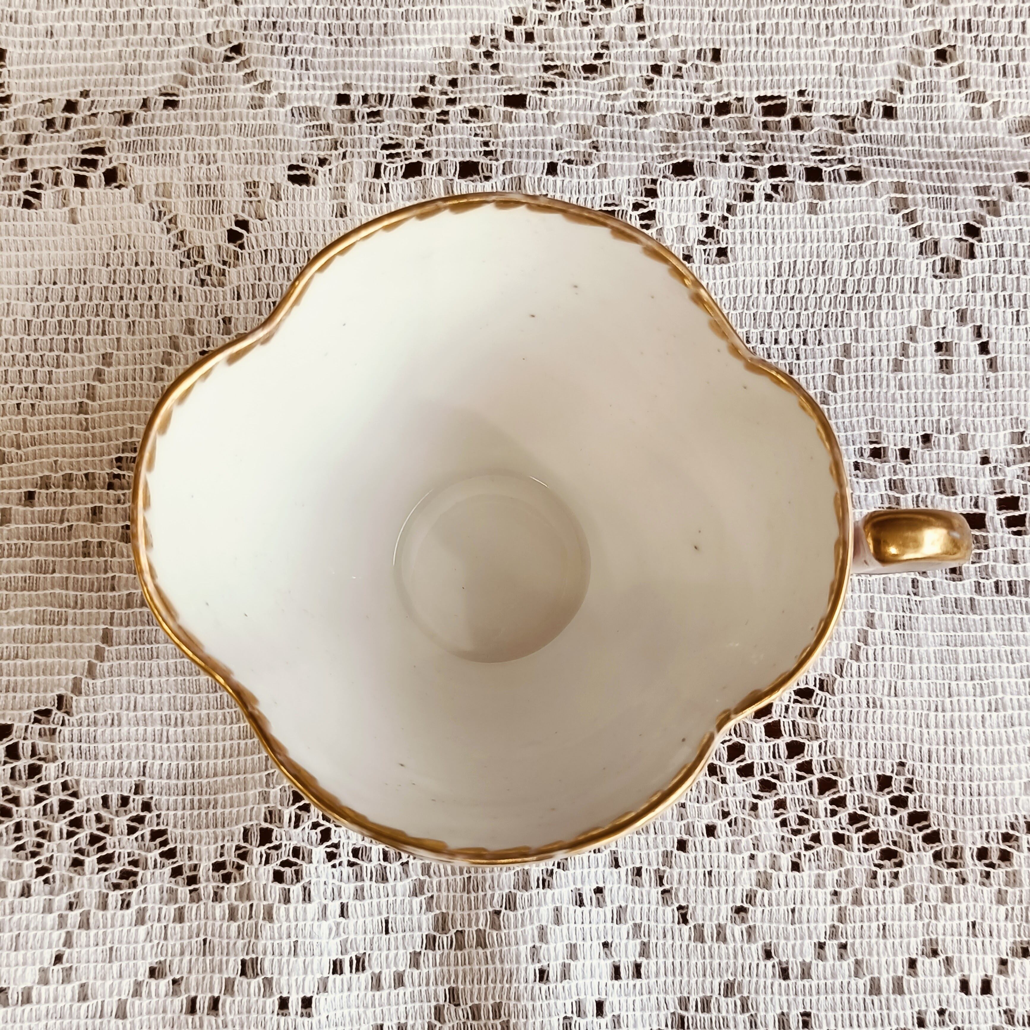 ソーサーの一部にヒビのような物が見られますが(17.18枚目画像)、内側に金彩の塗料が入りこんでいる事から、おそらく製造時に出来たものと思われます。
