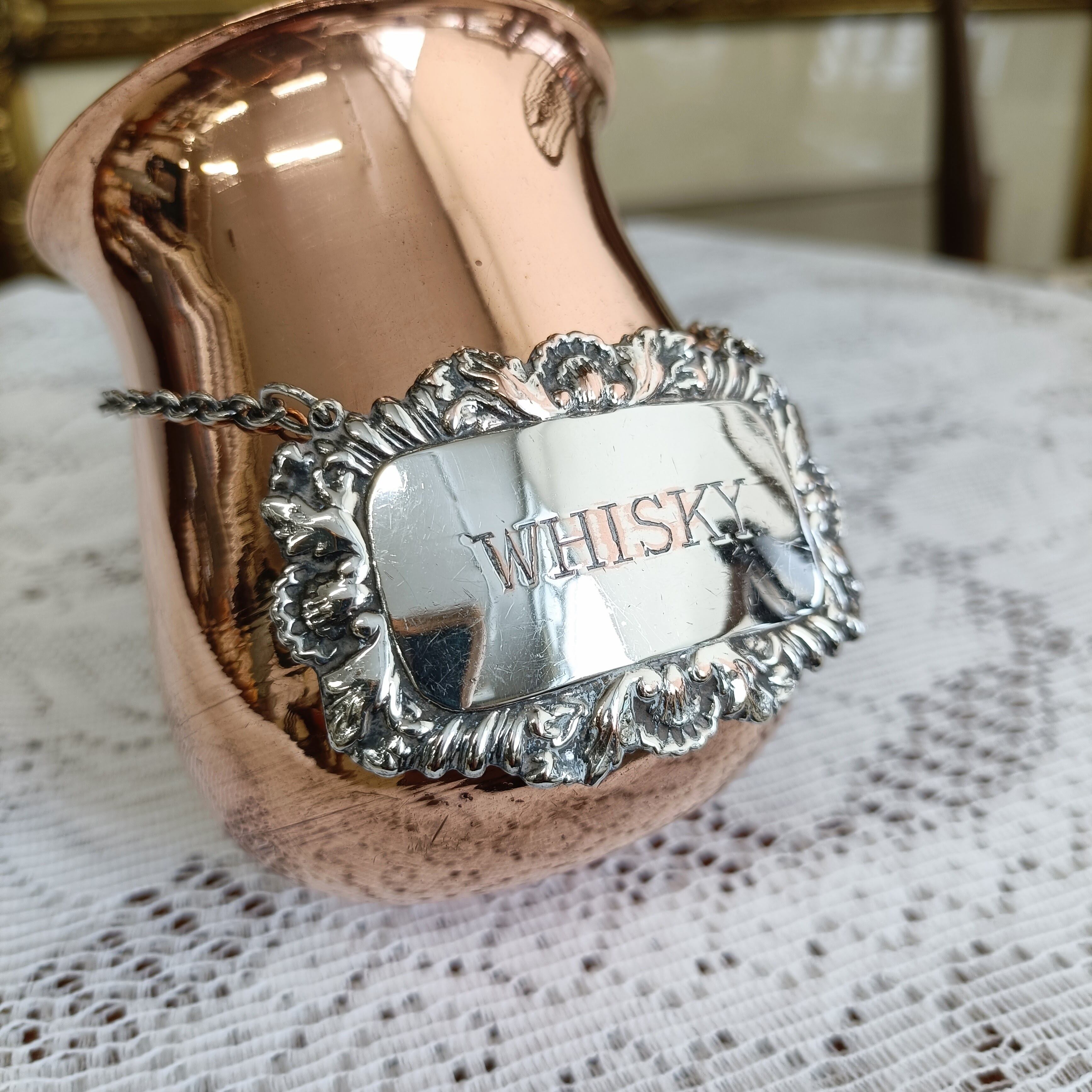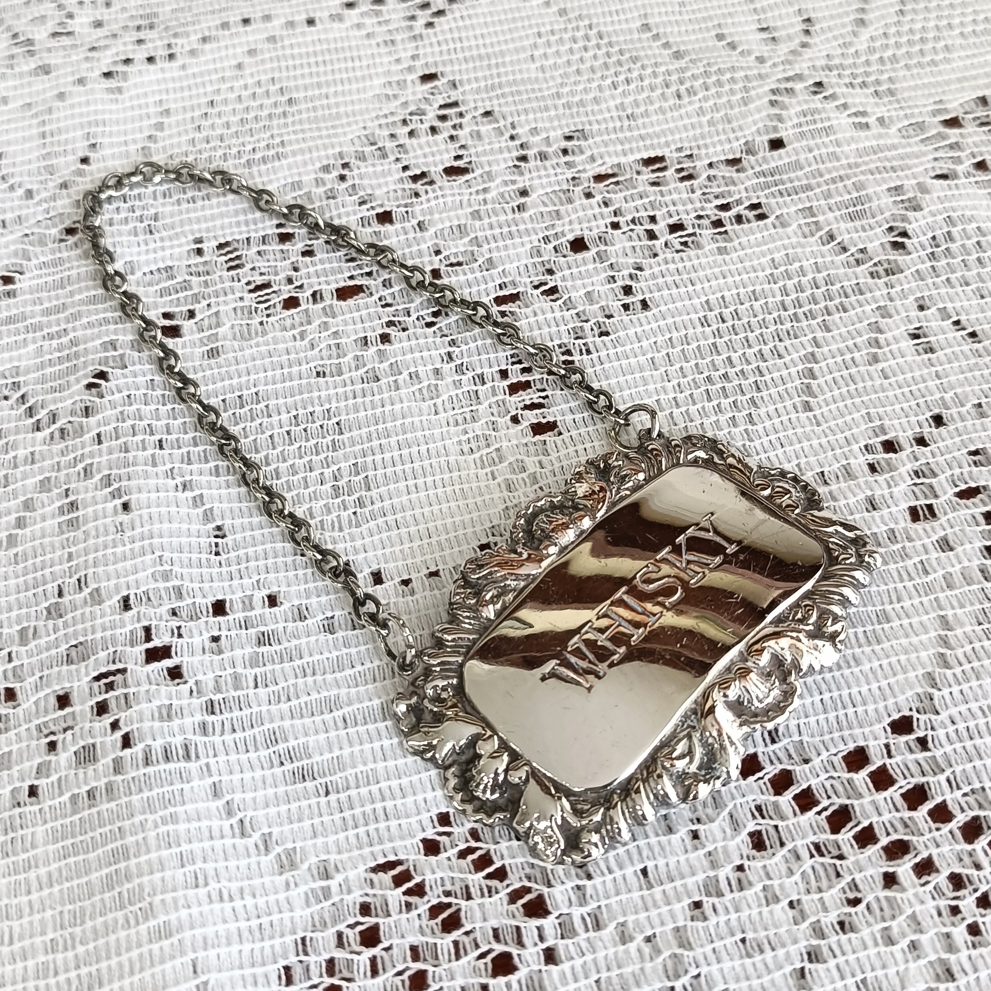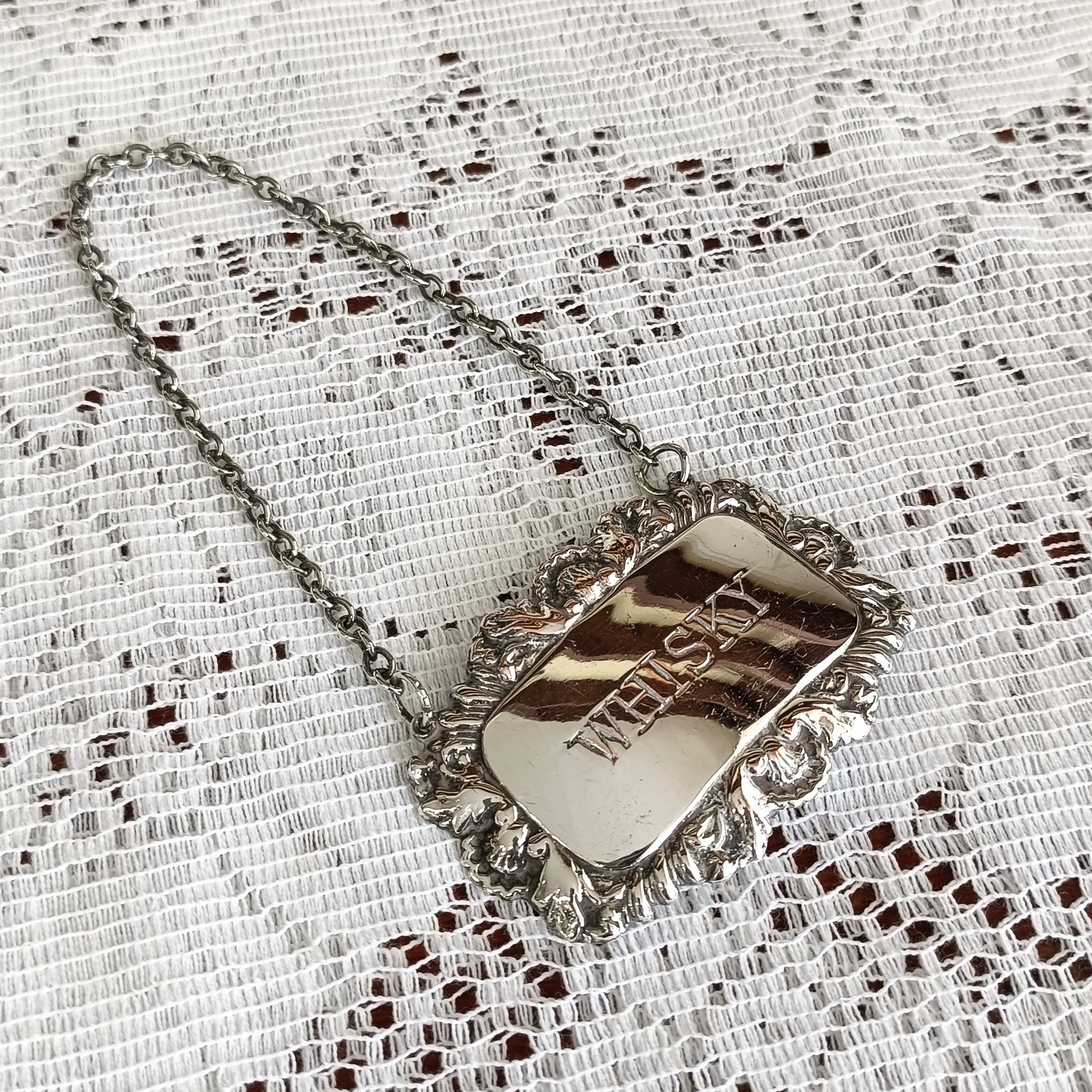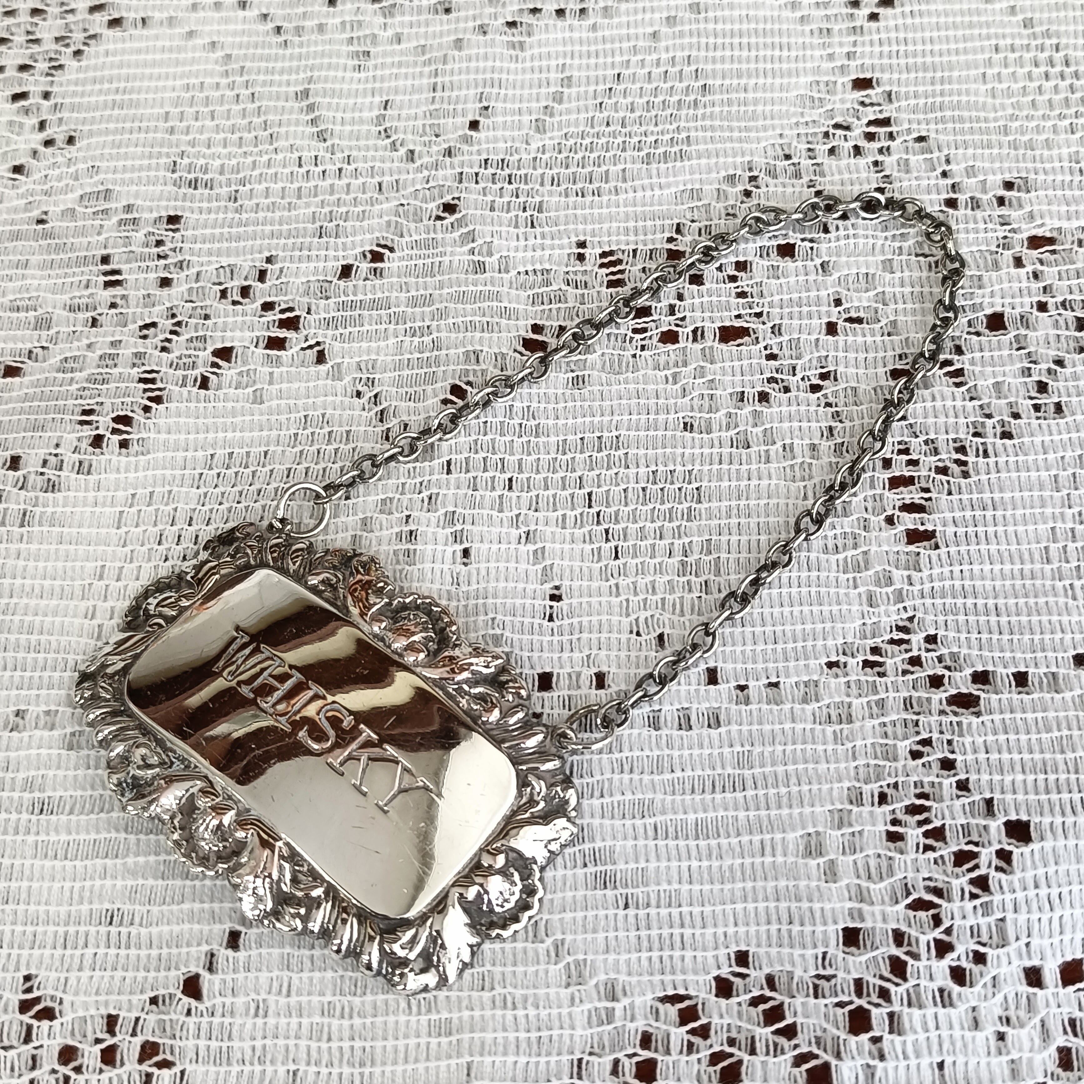 美しい輝きの シルバープレート製ウィスキーボトルタグです。