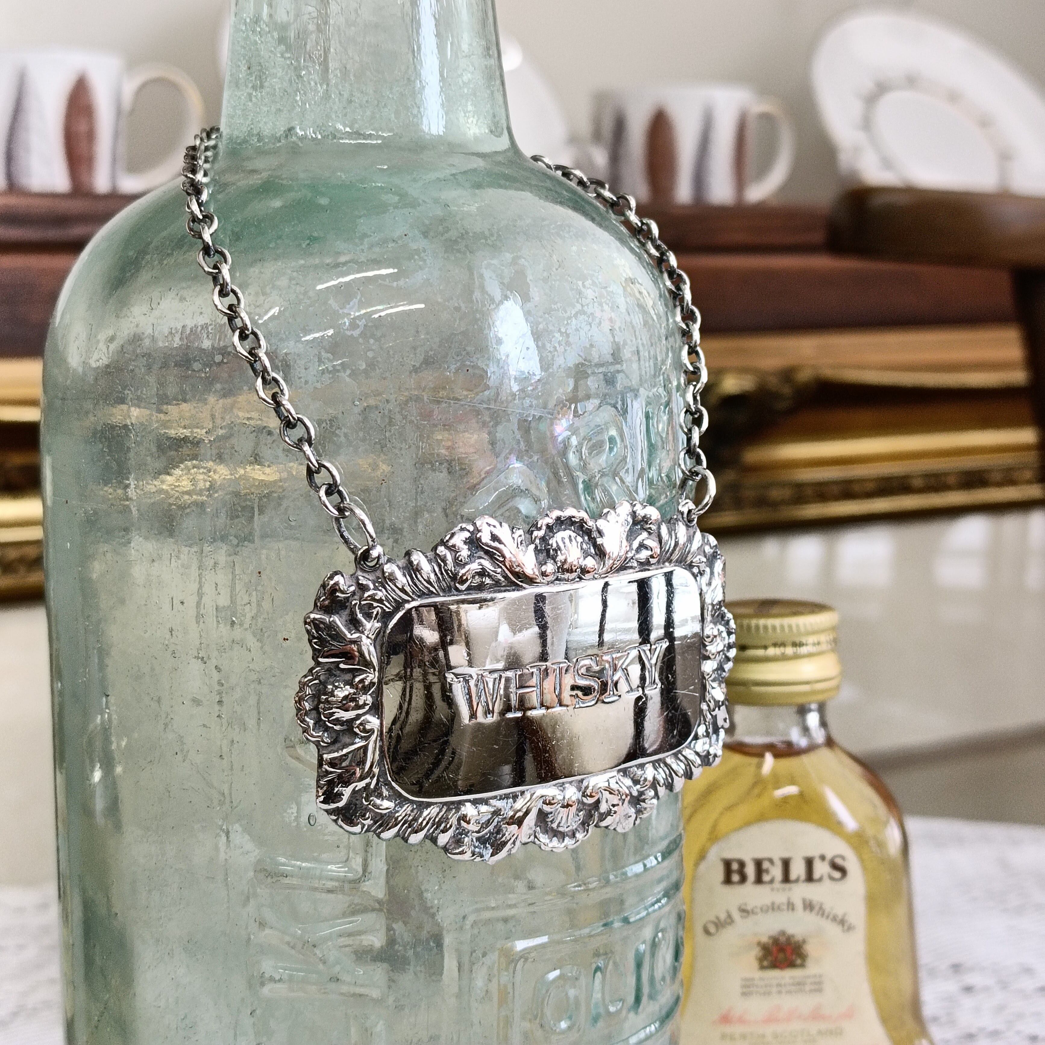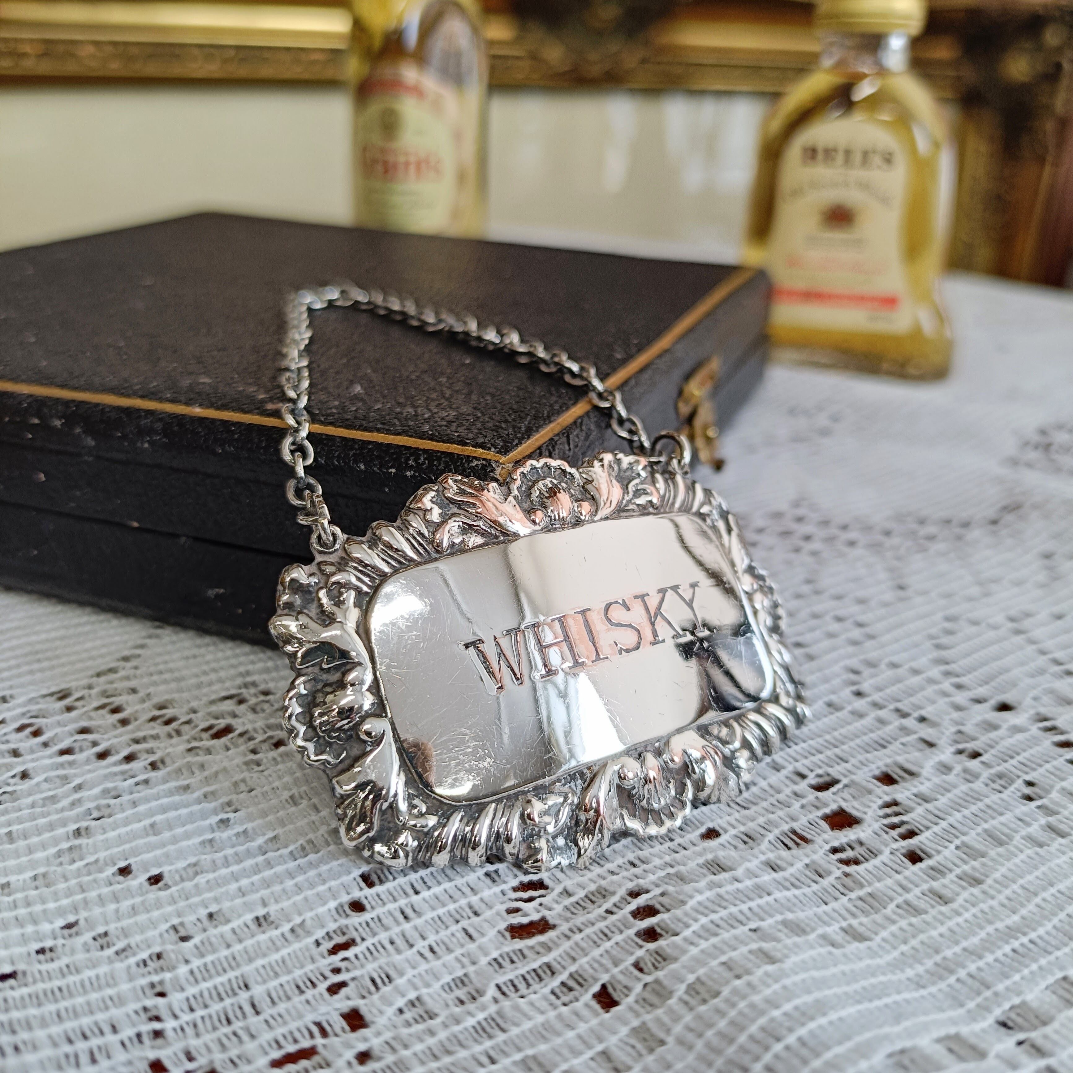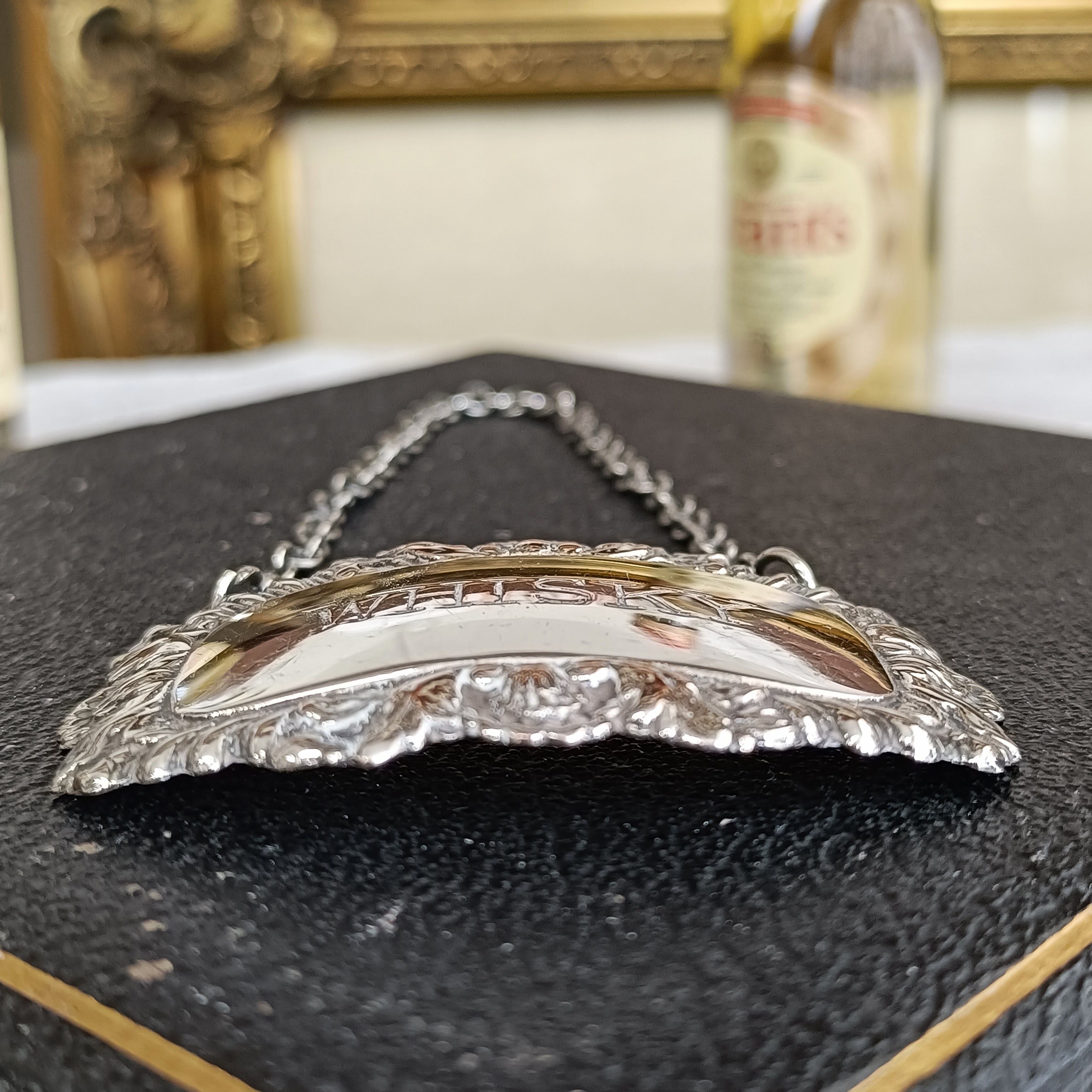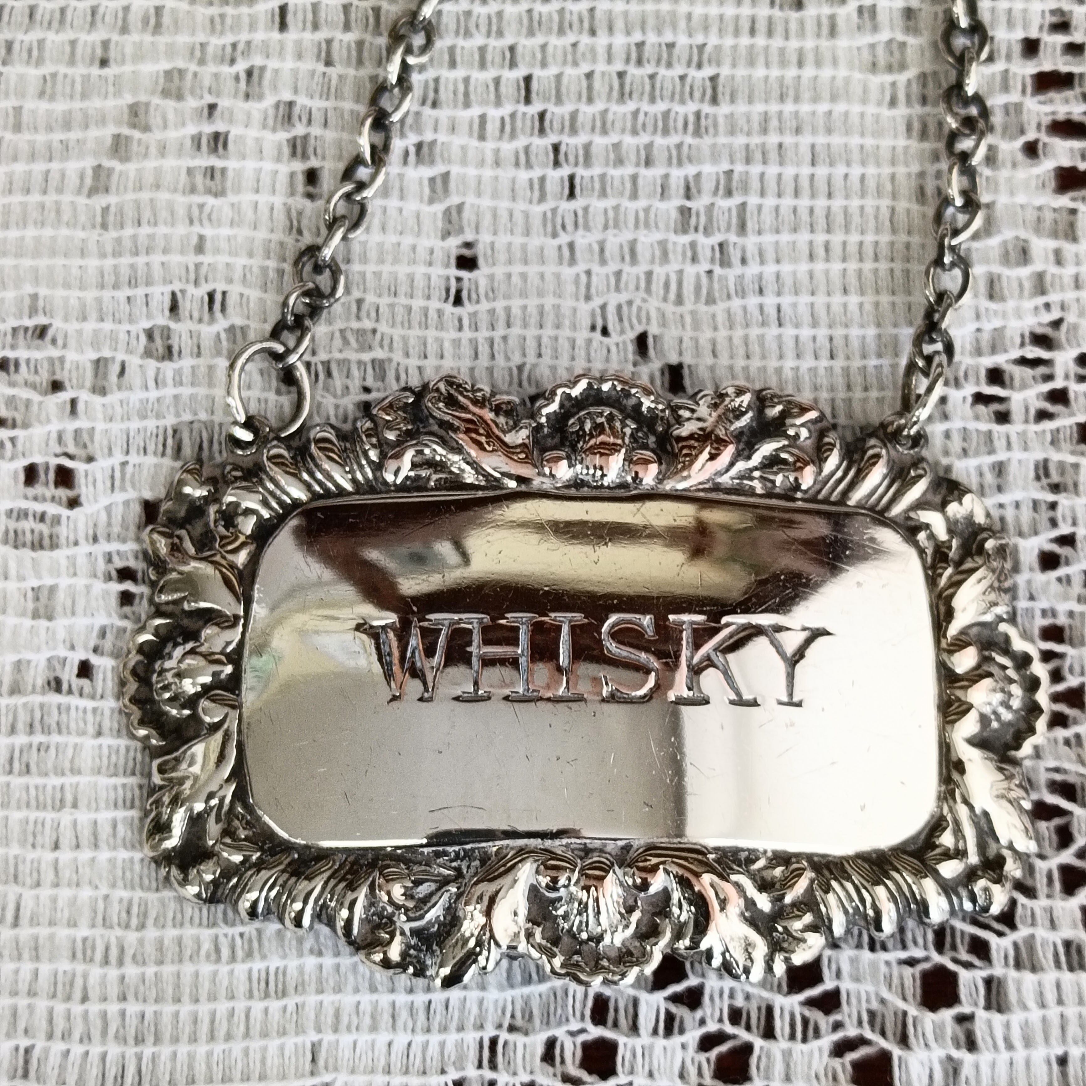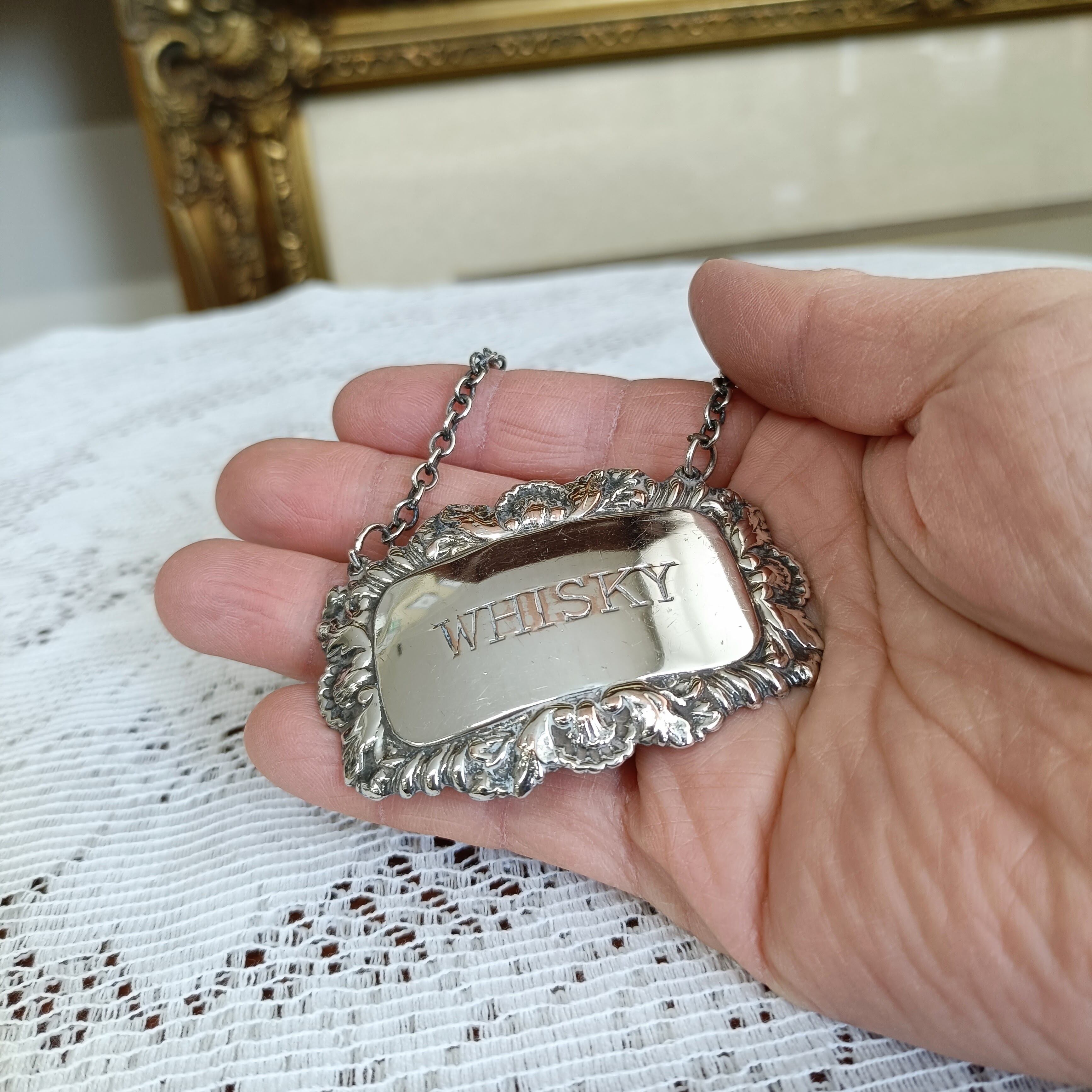 美しい輝きの シルバープレート製ウィスキーボトルタグです。