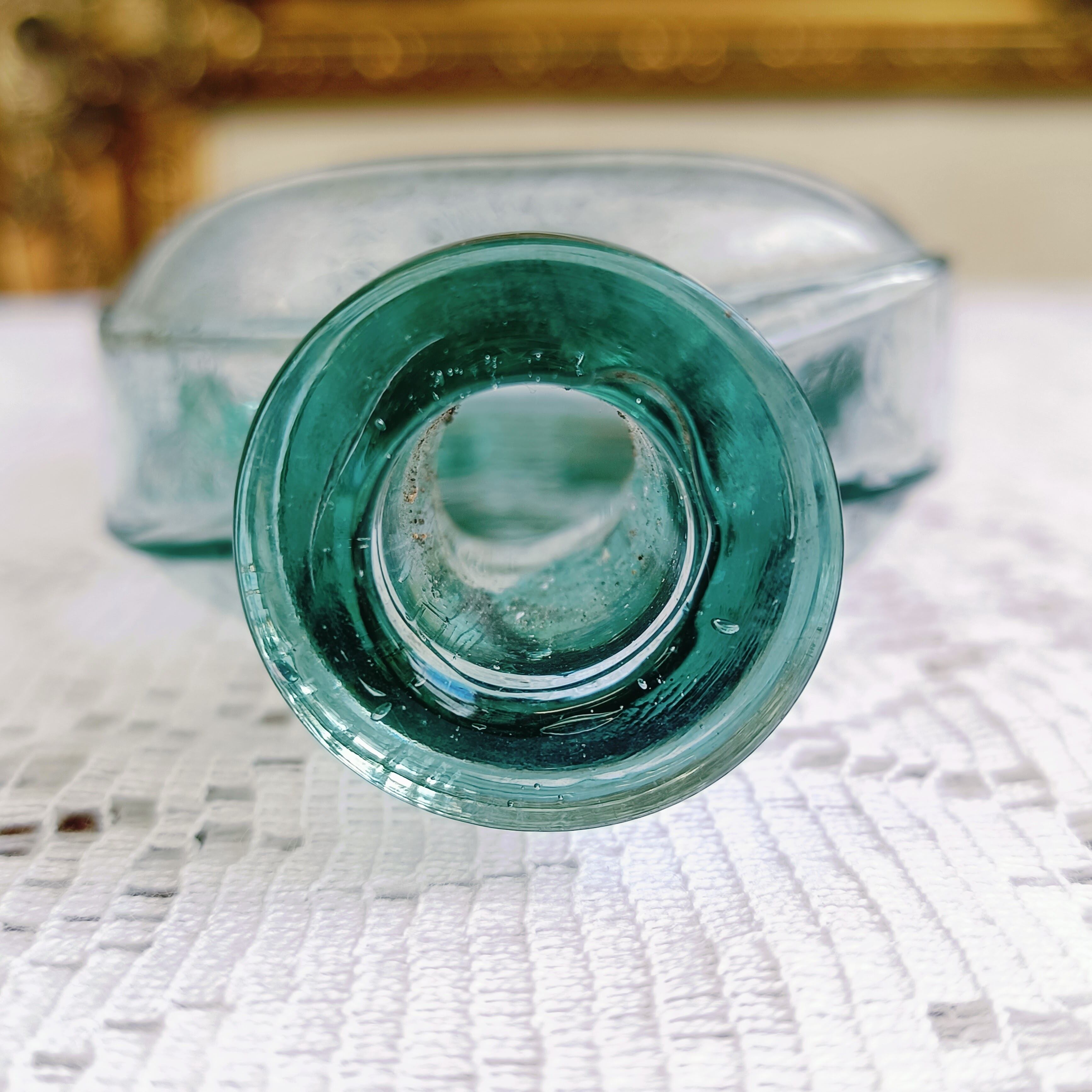 爽やかなアクアブルー色の、可愛らしいアンティークガラス。