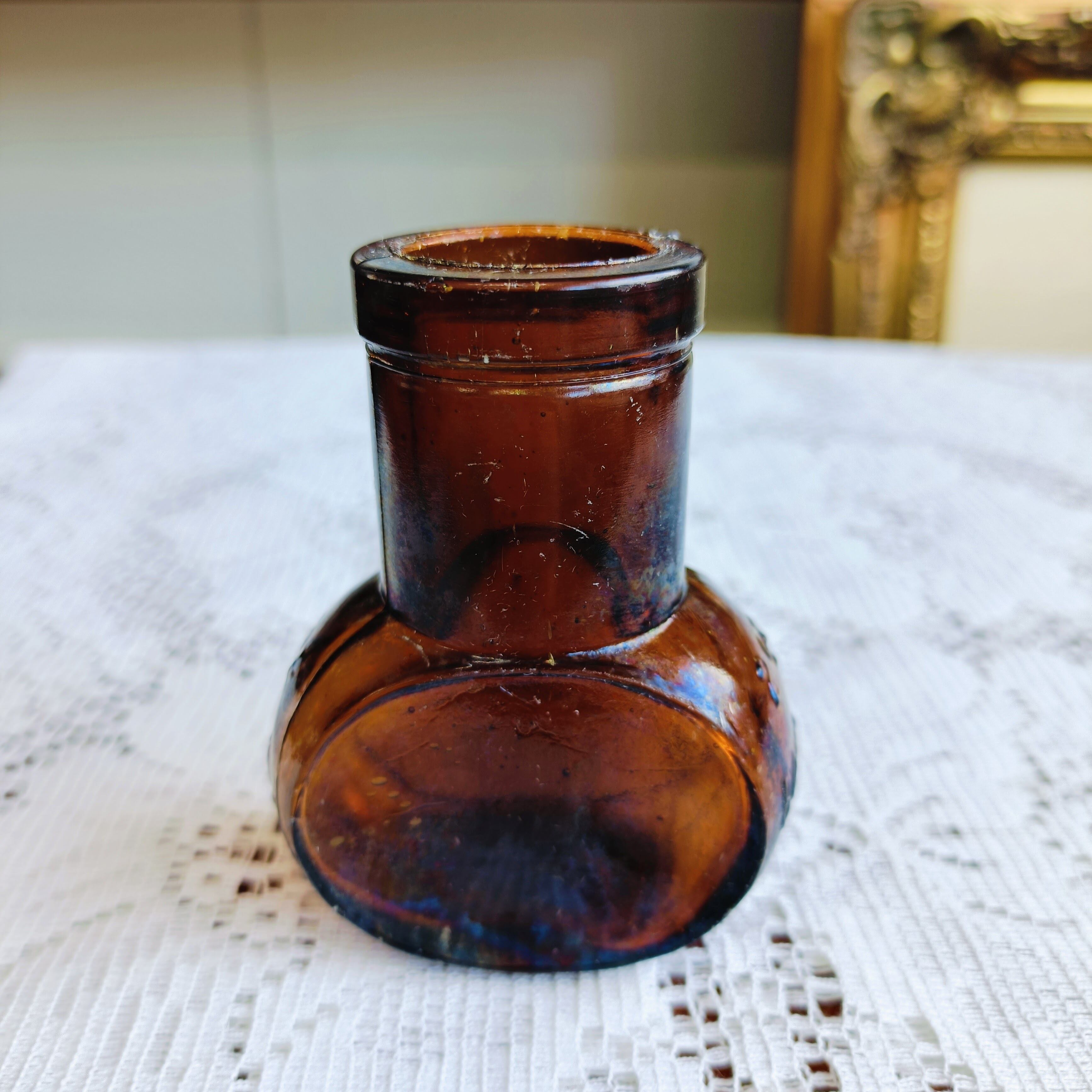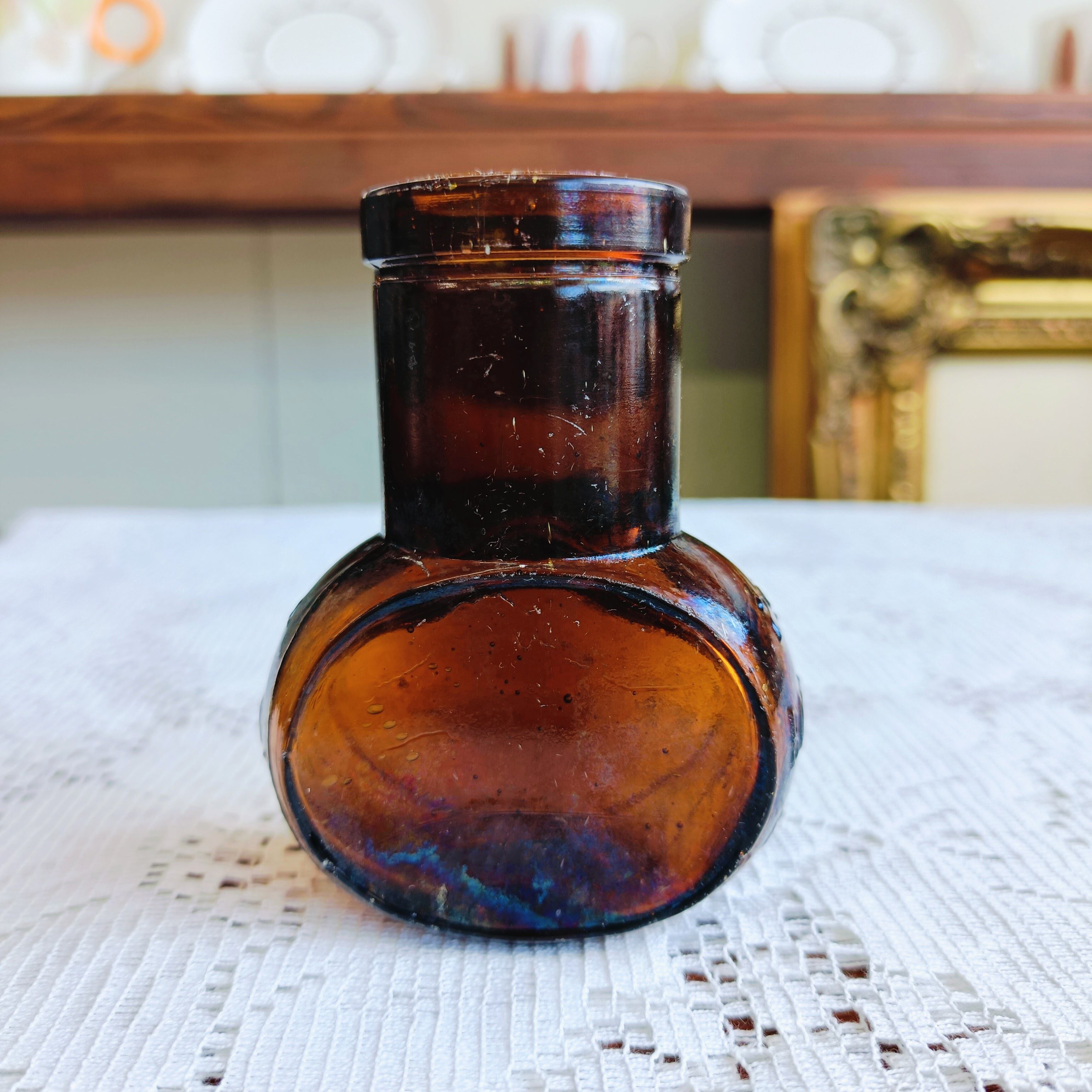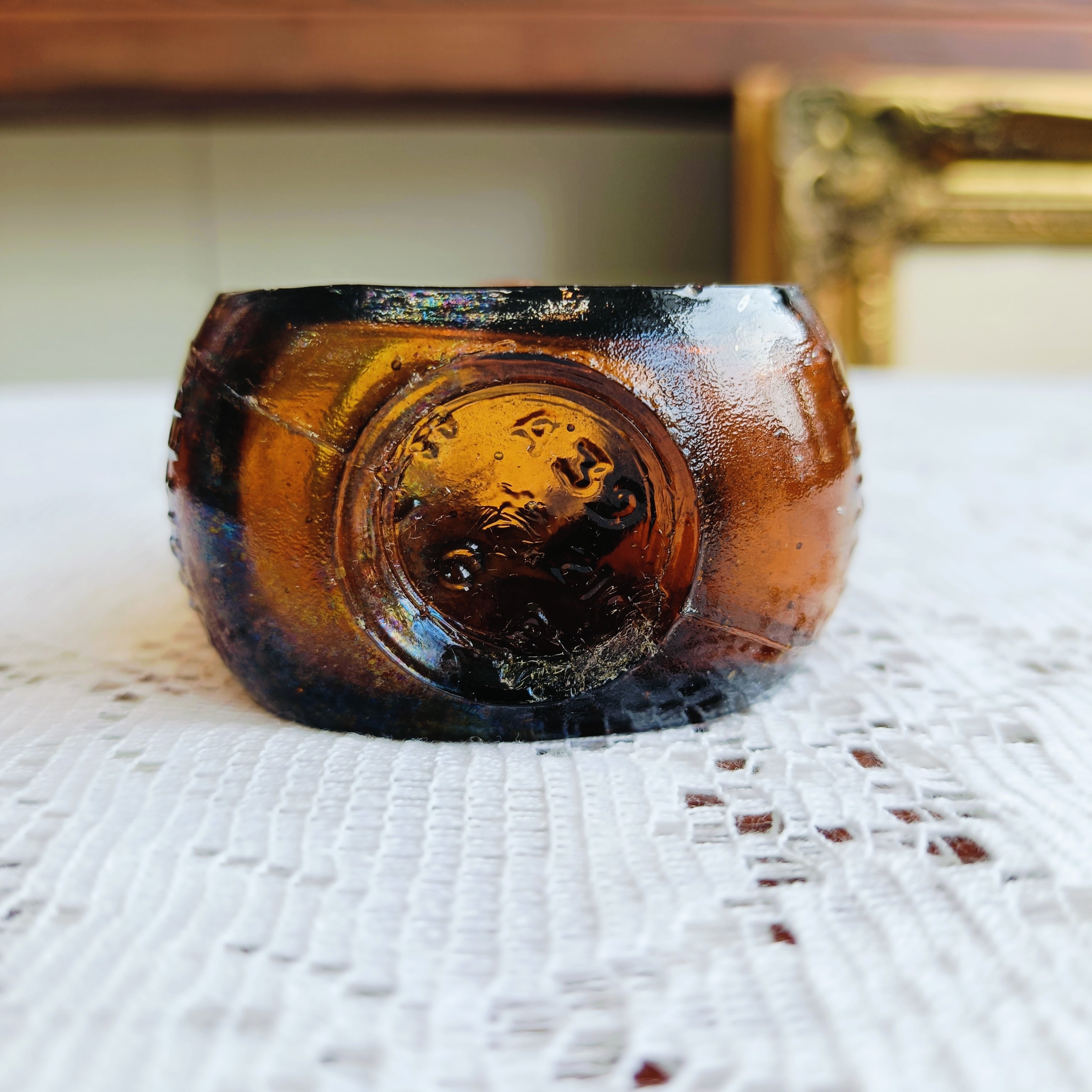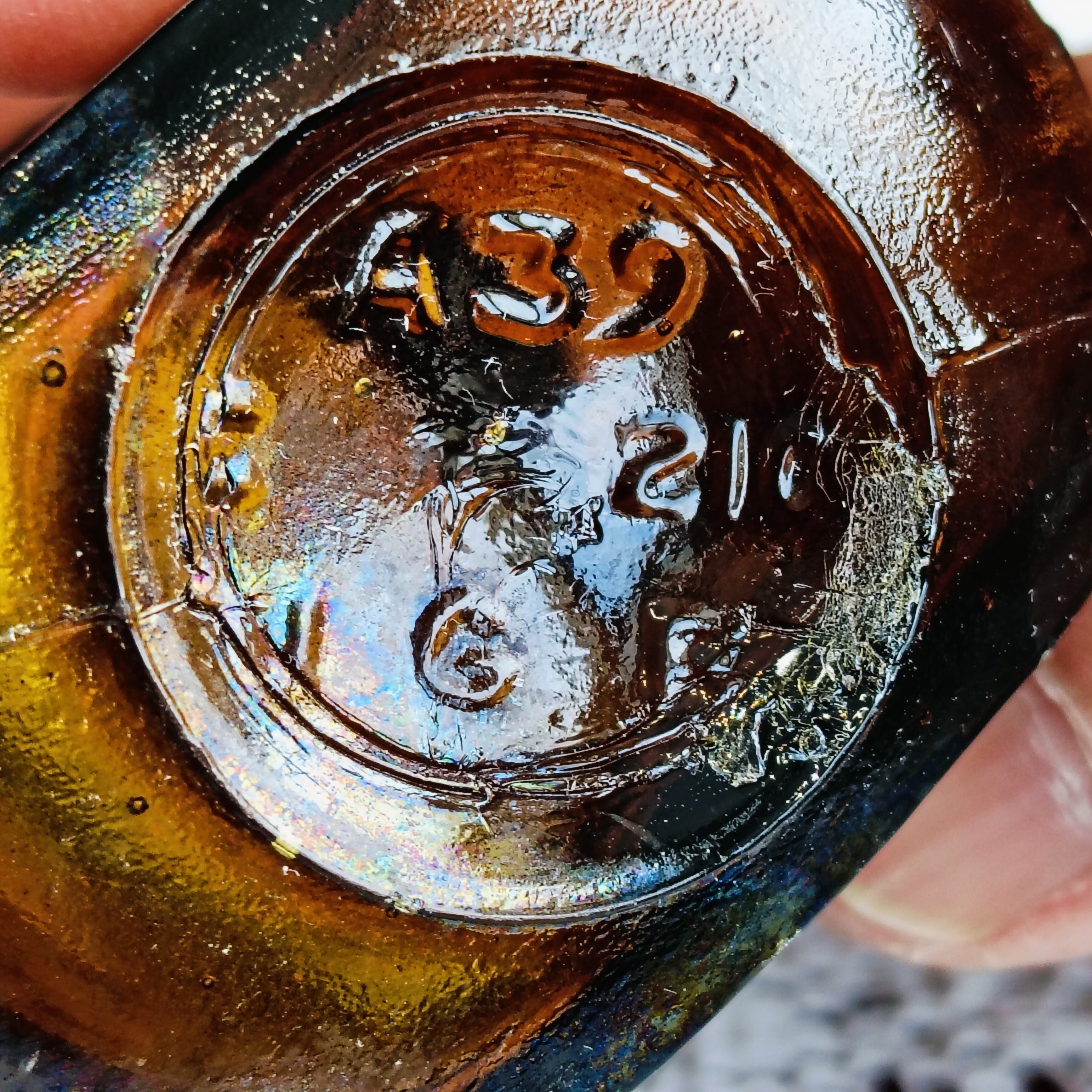 美しい琥珀色のアンティークガラスボトルが入荷しました。