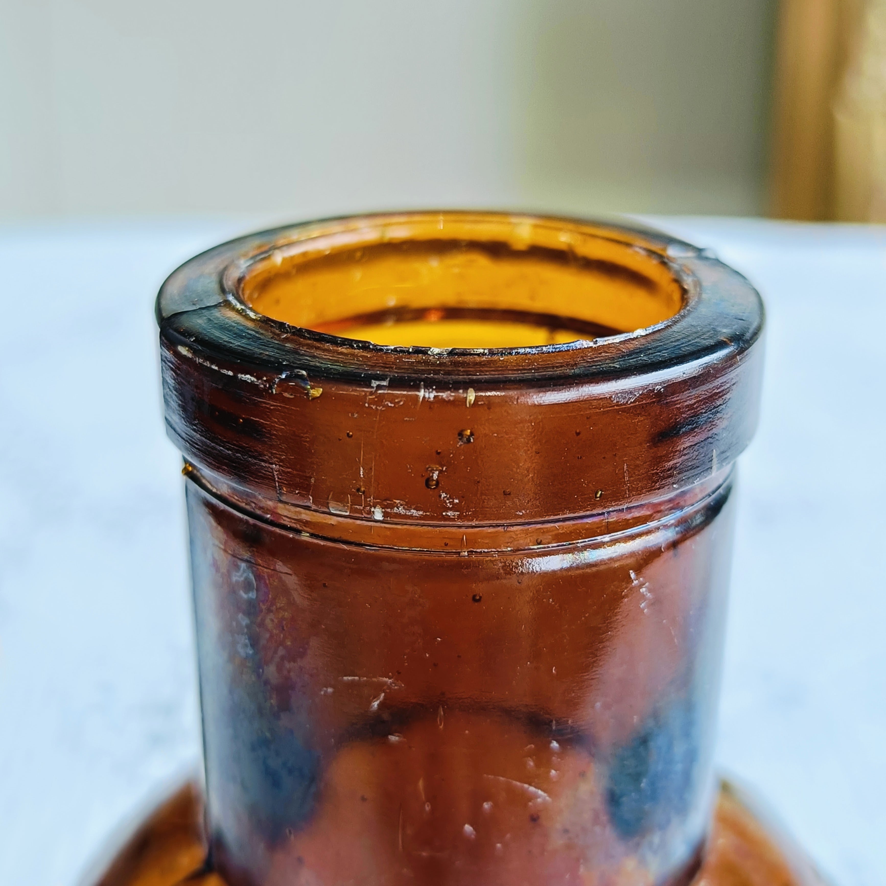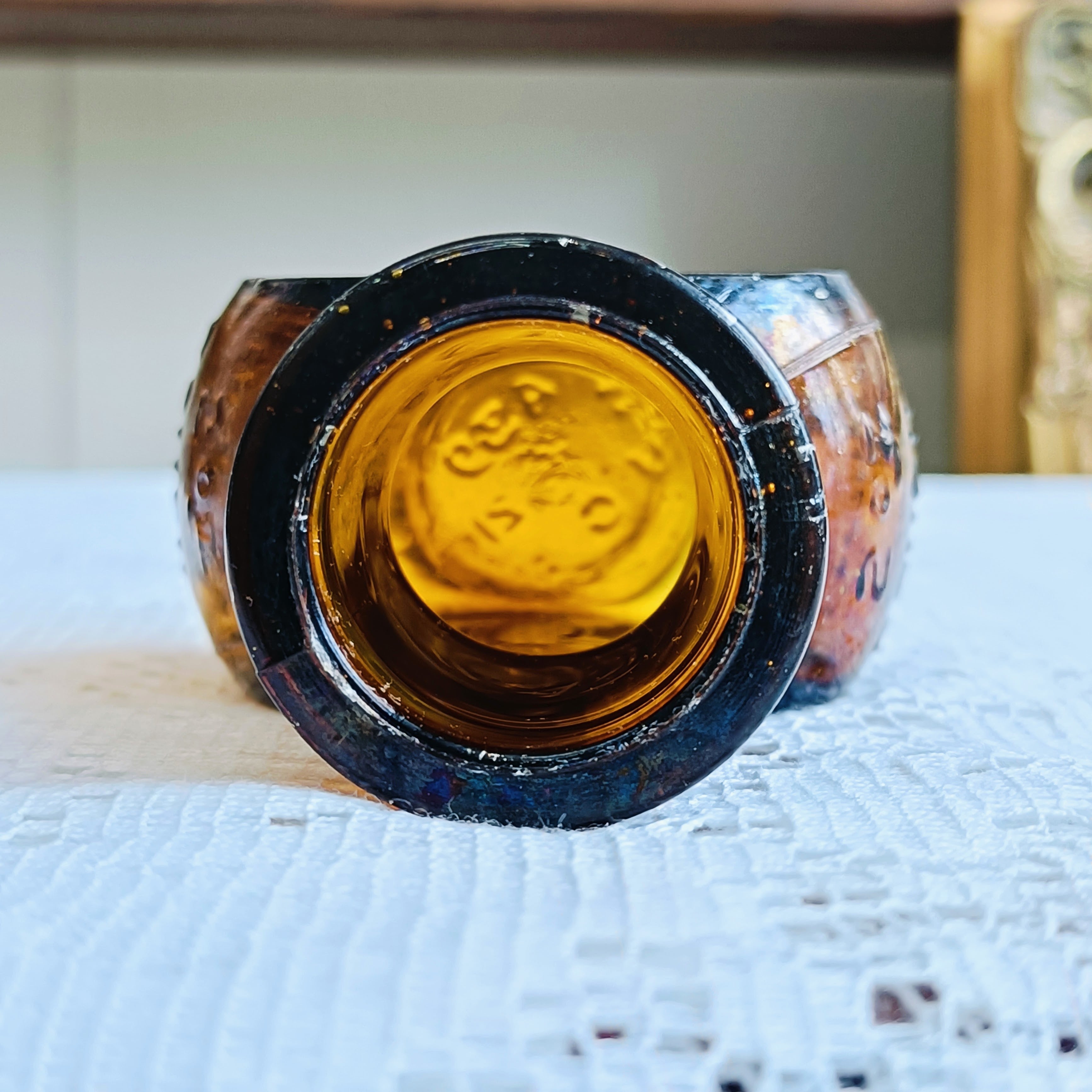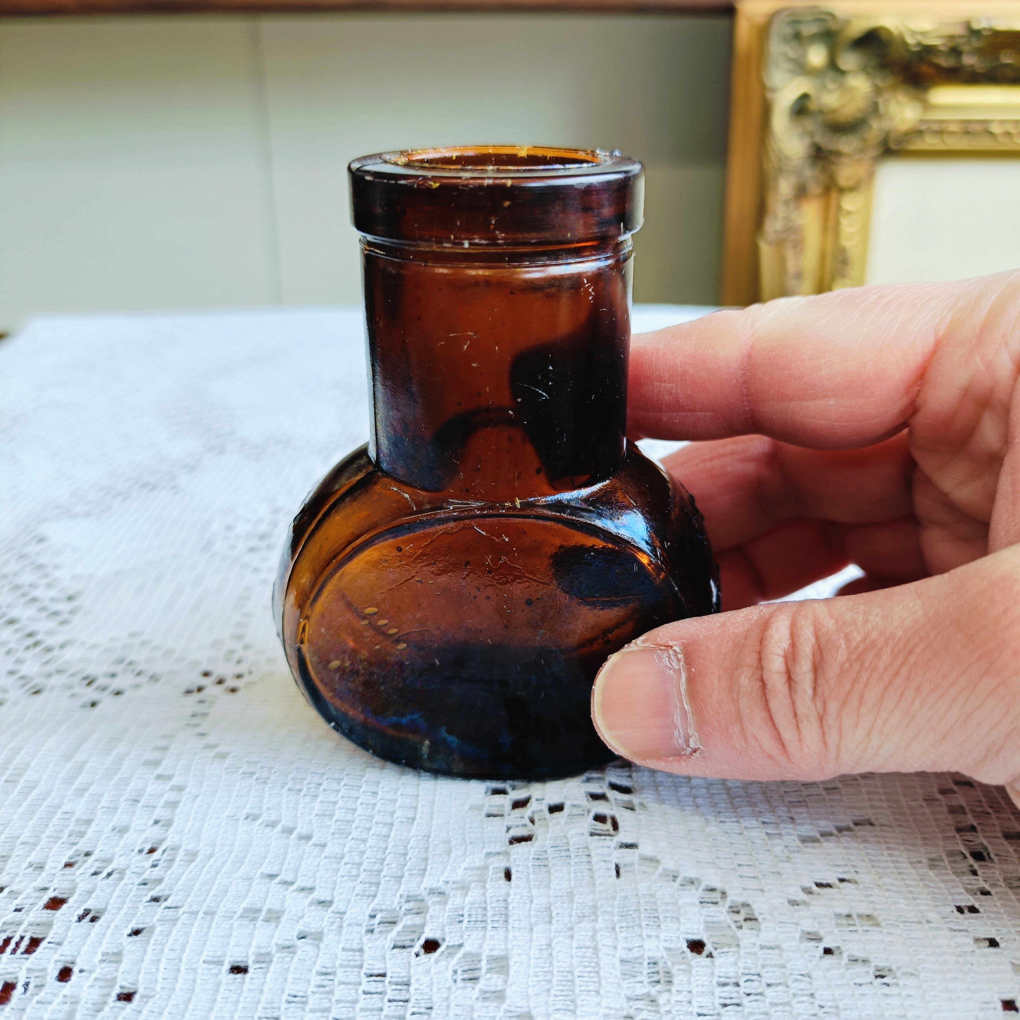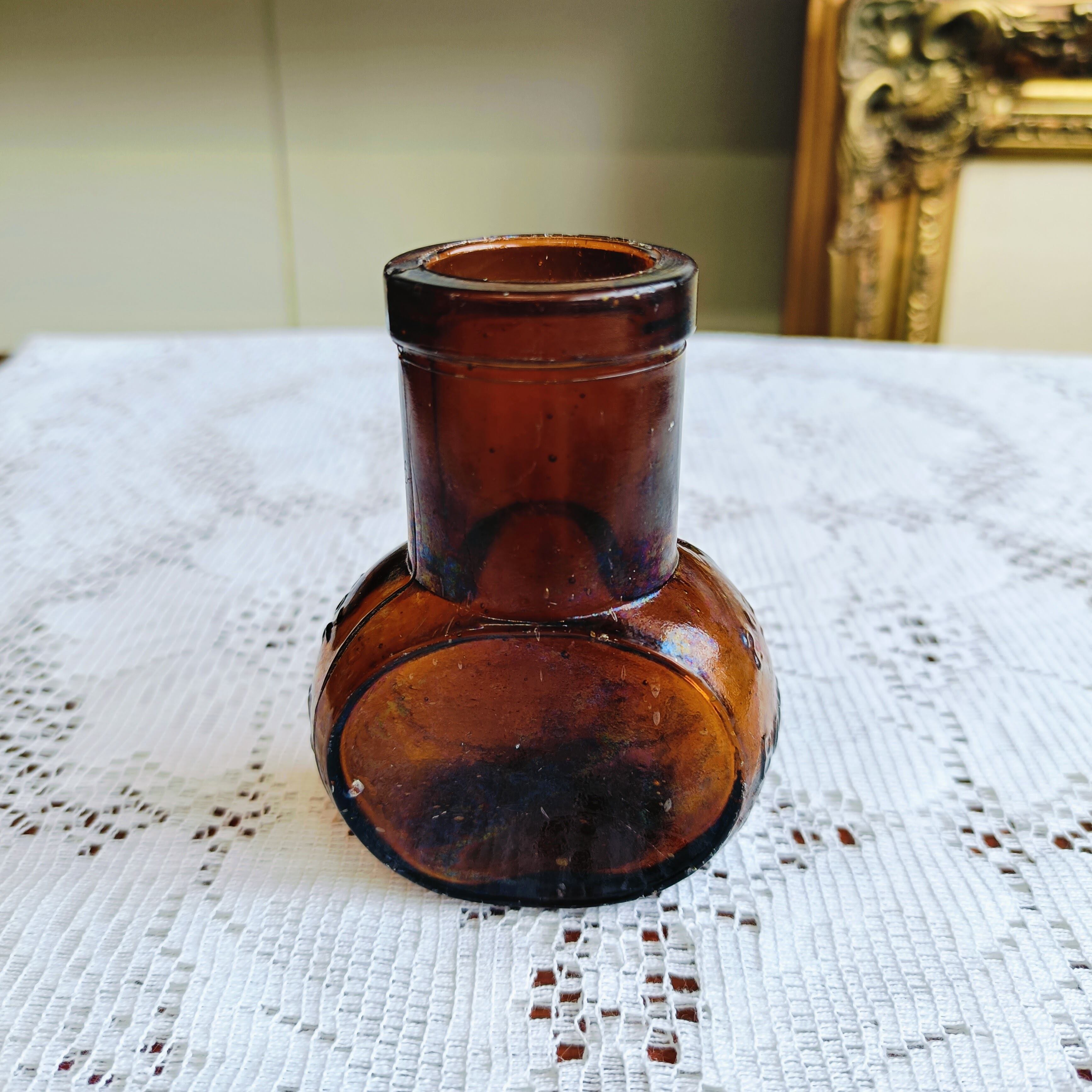 美しい琥珀色のアンティークガラスボトルが入荷しました。