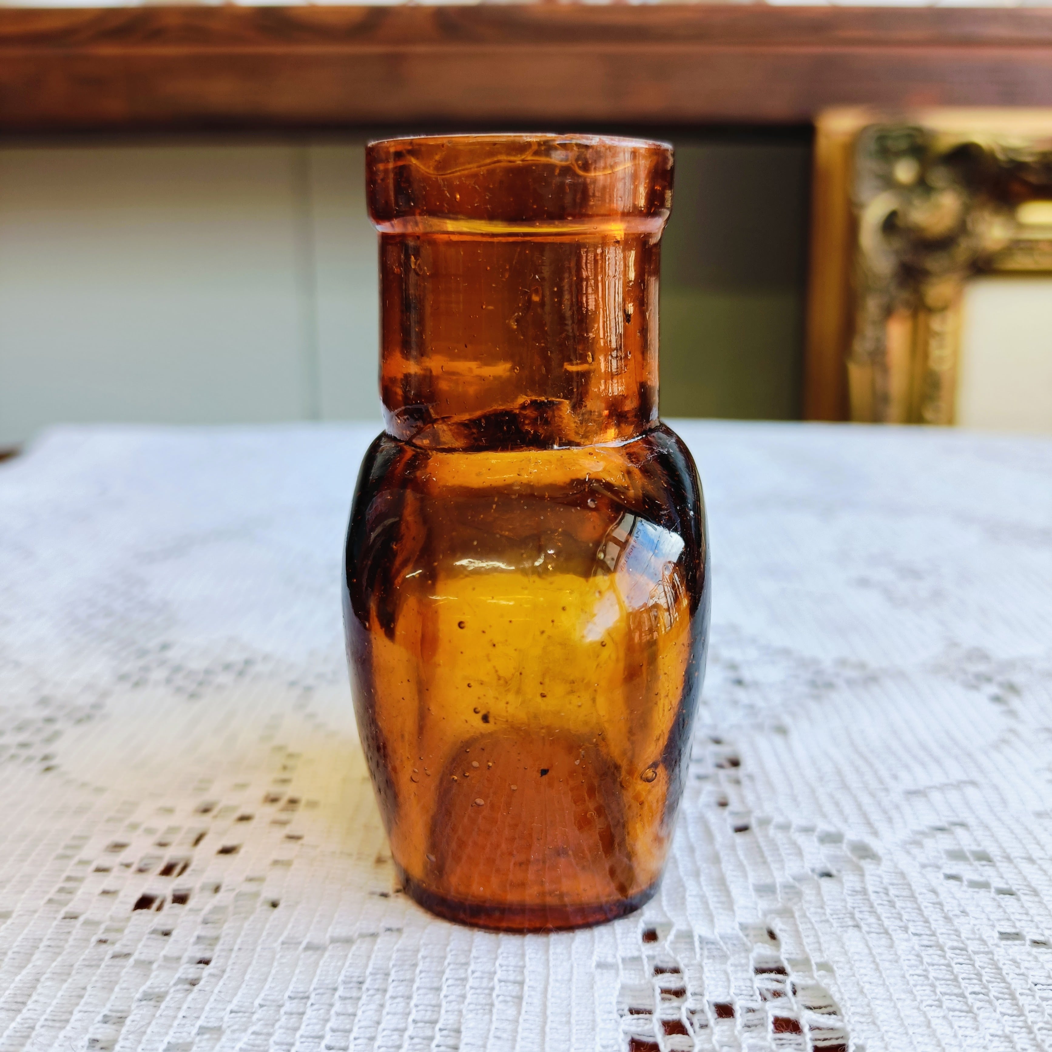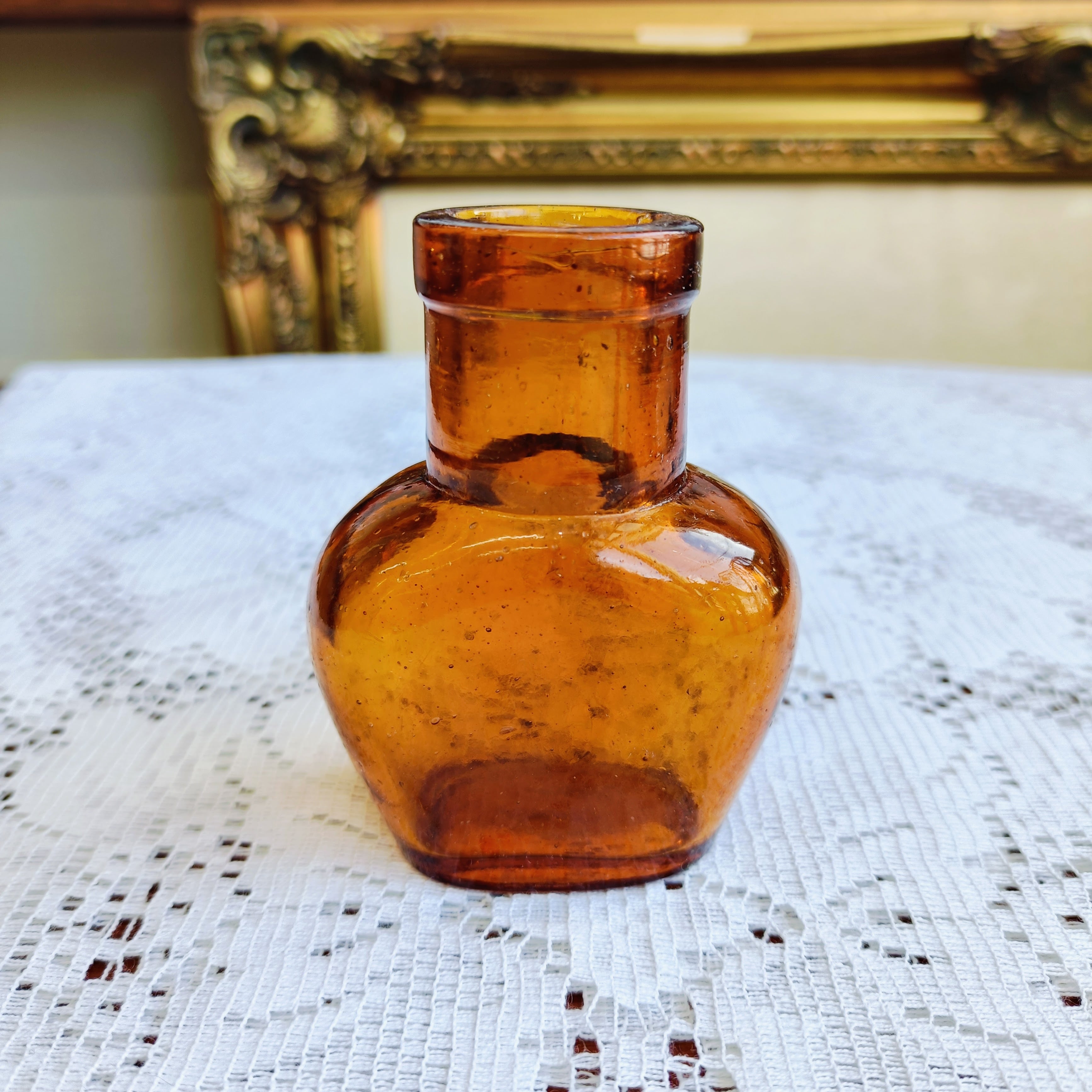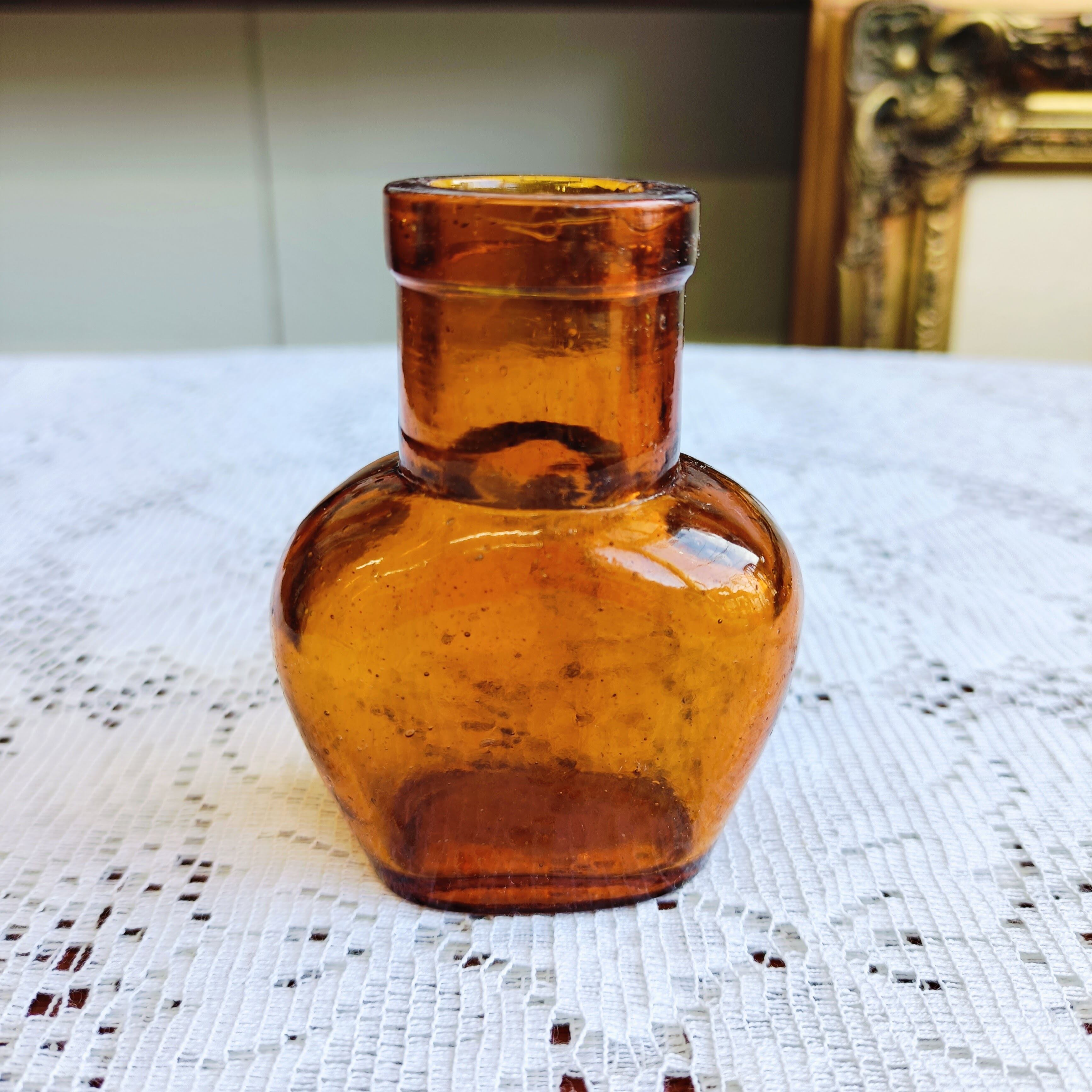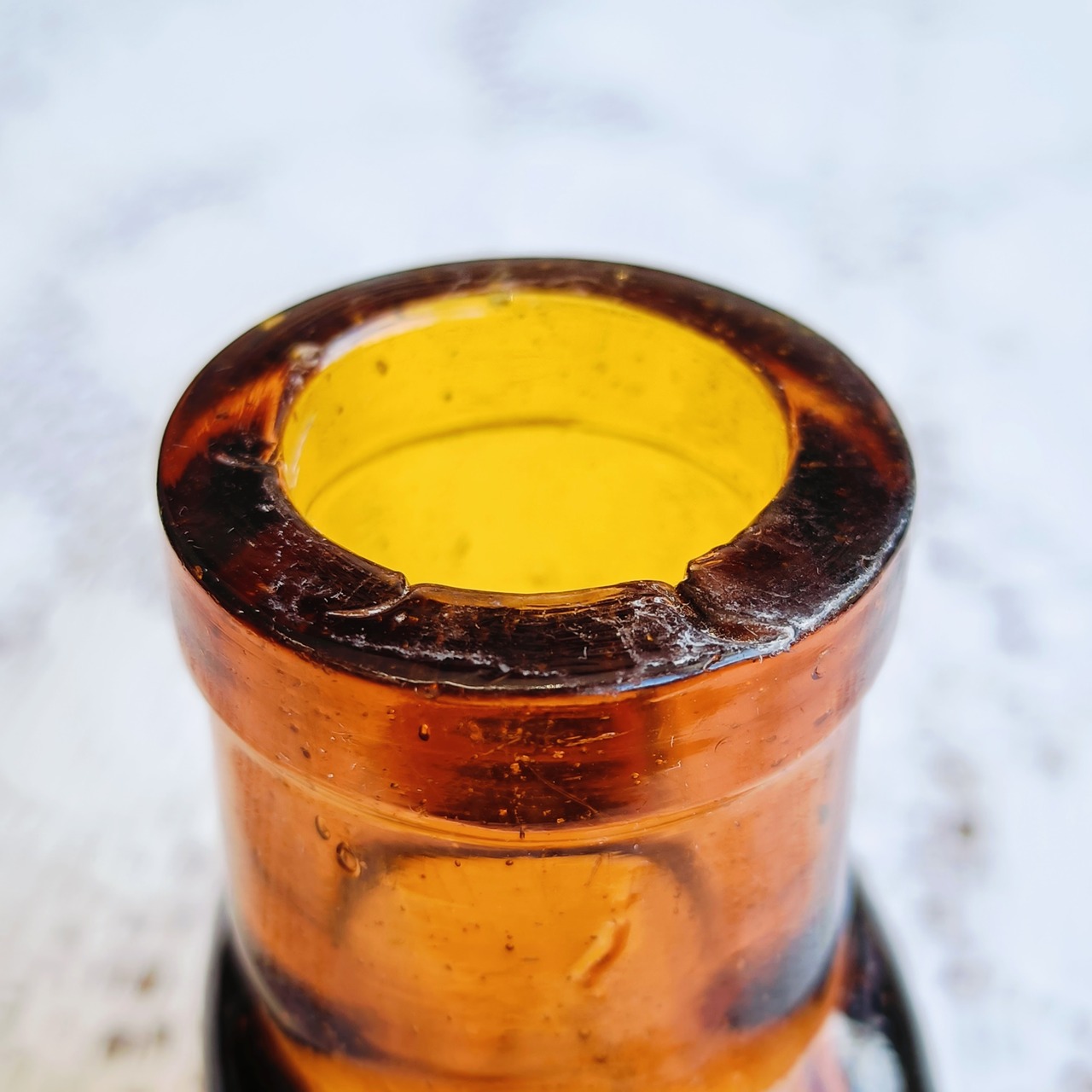 美しい琥珀色のアンティークガラスボトルが入荷しました。