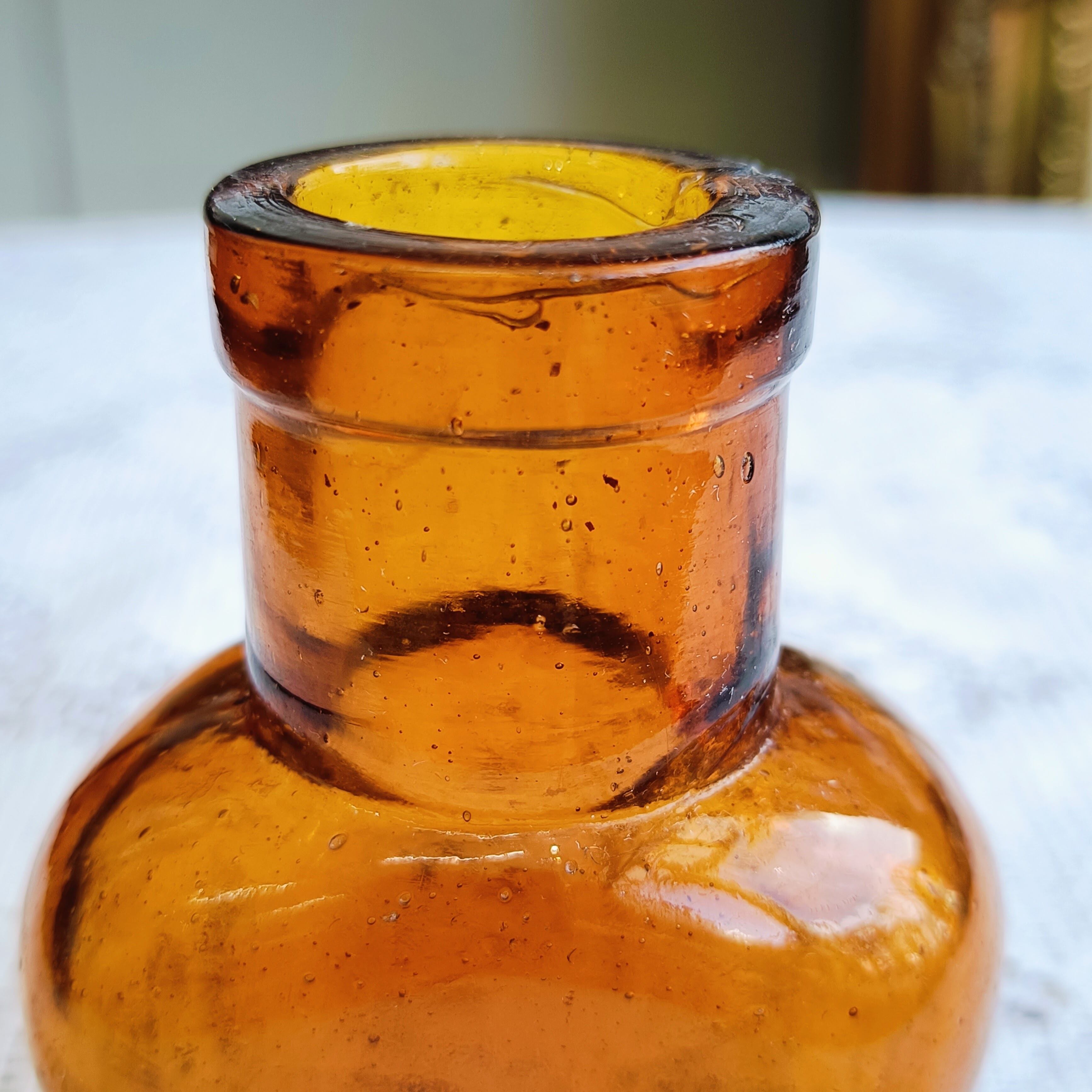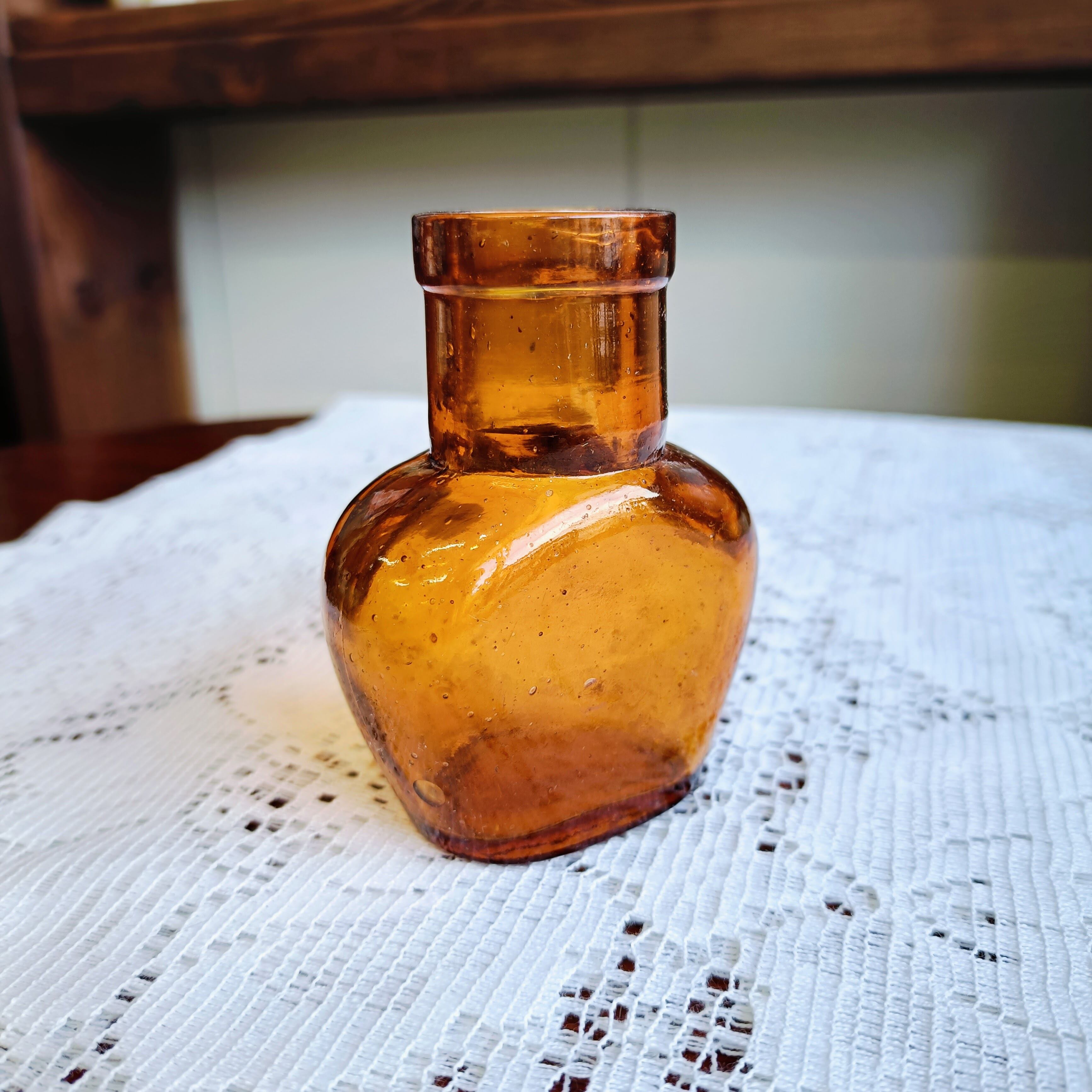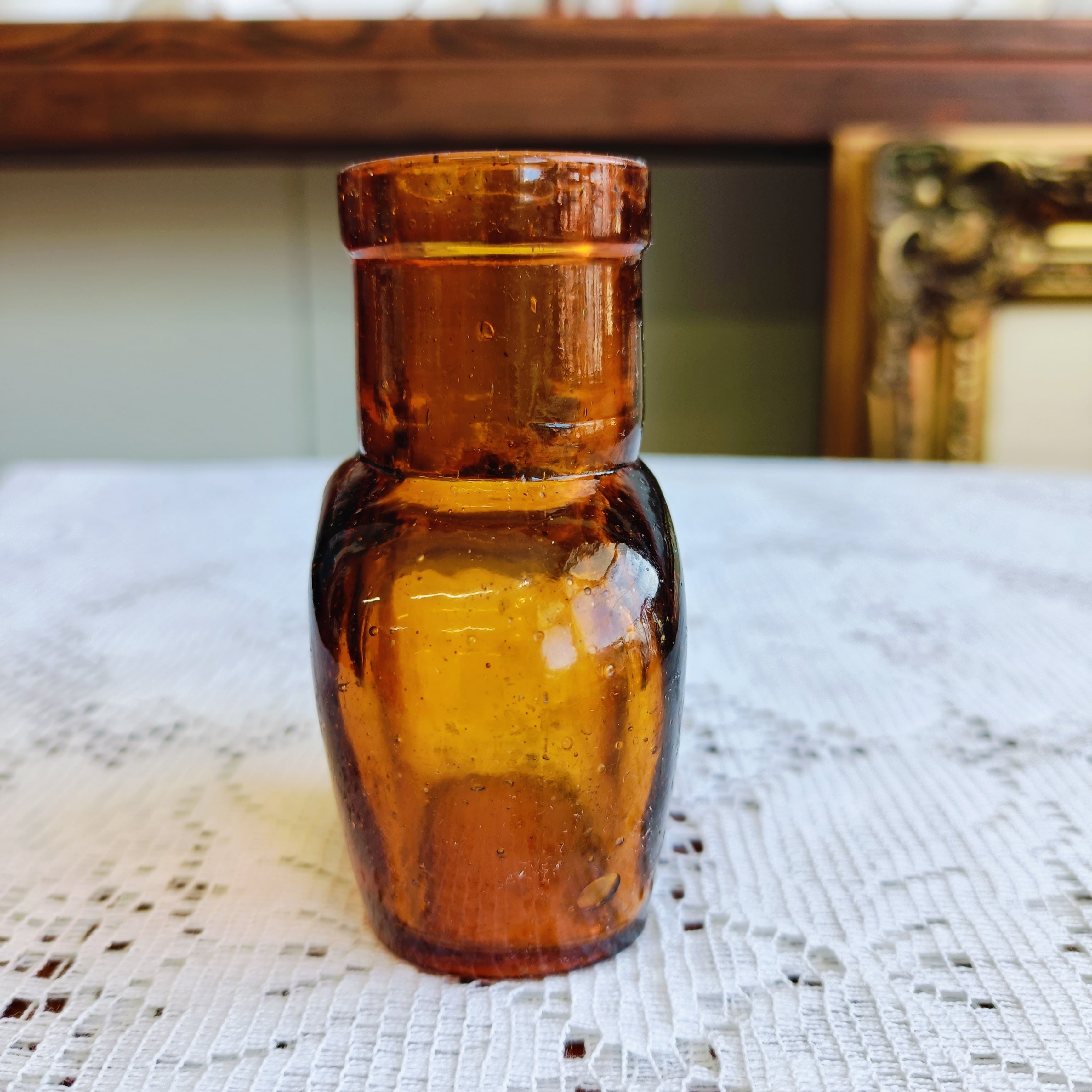 美しい琥珀色のアンティークガラスボトルが入荷しました。