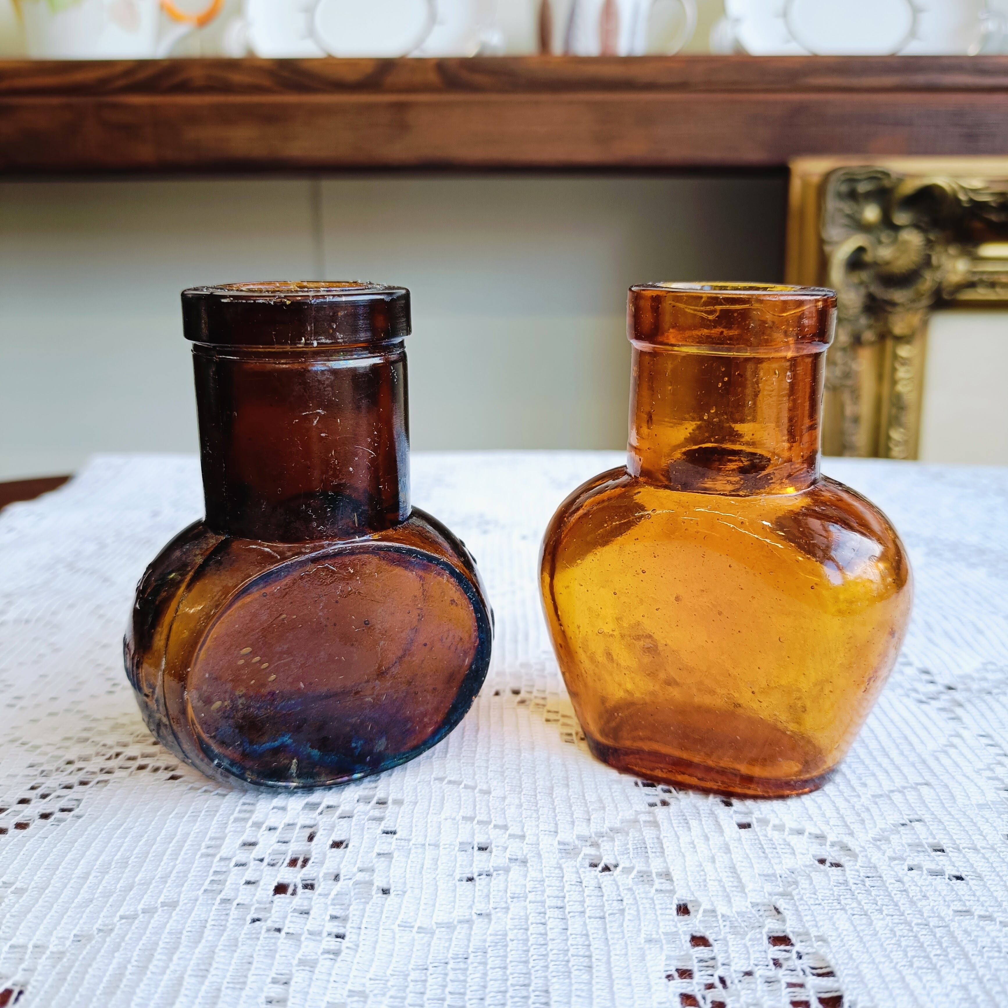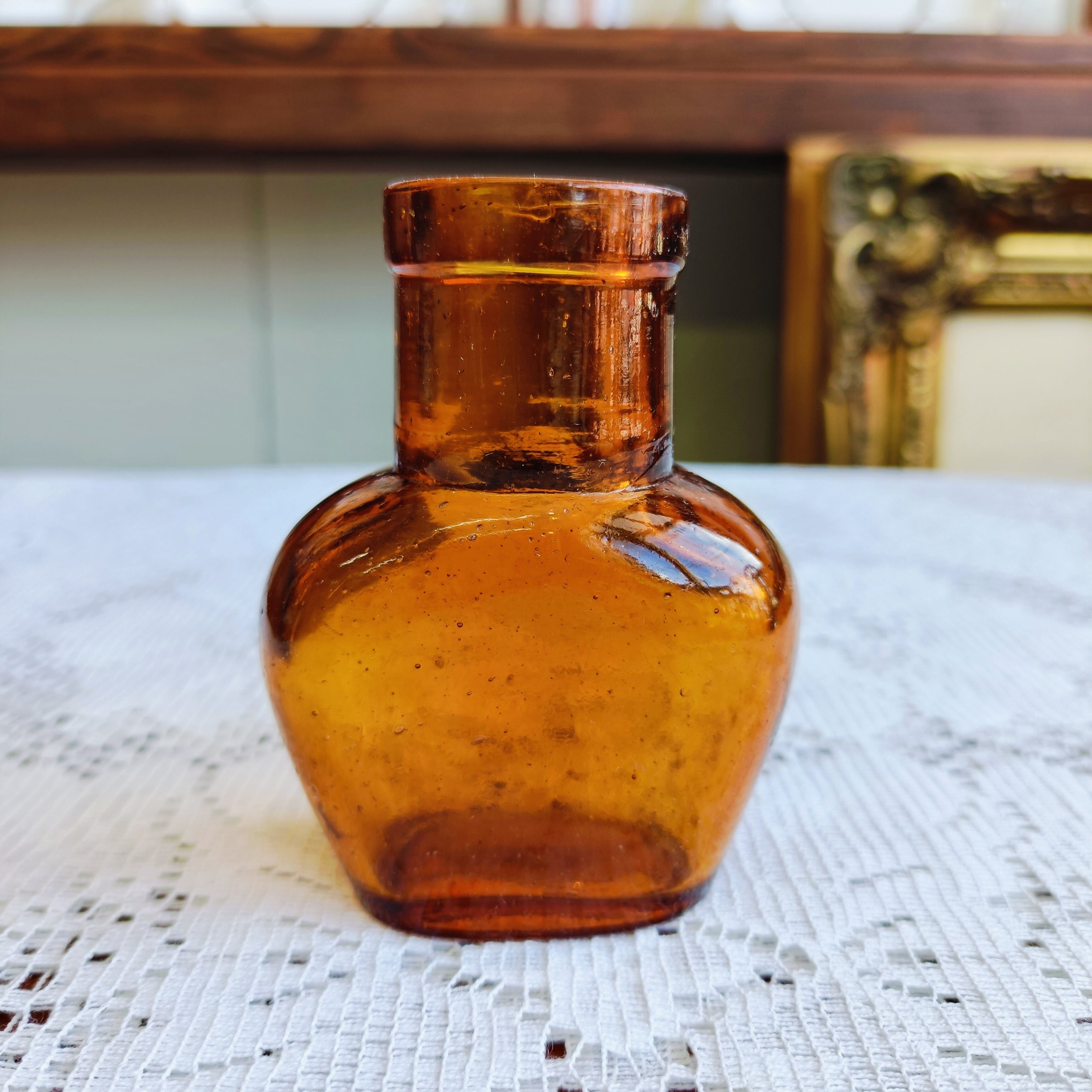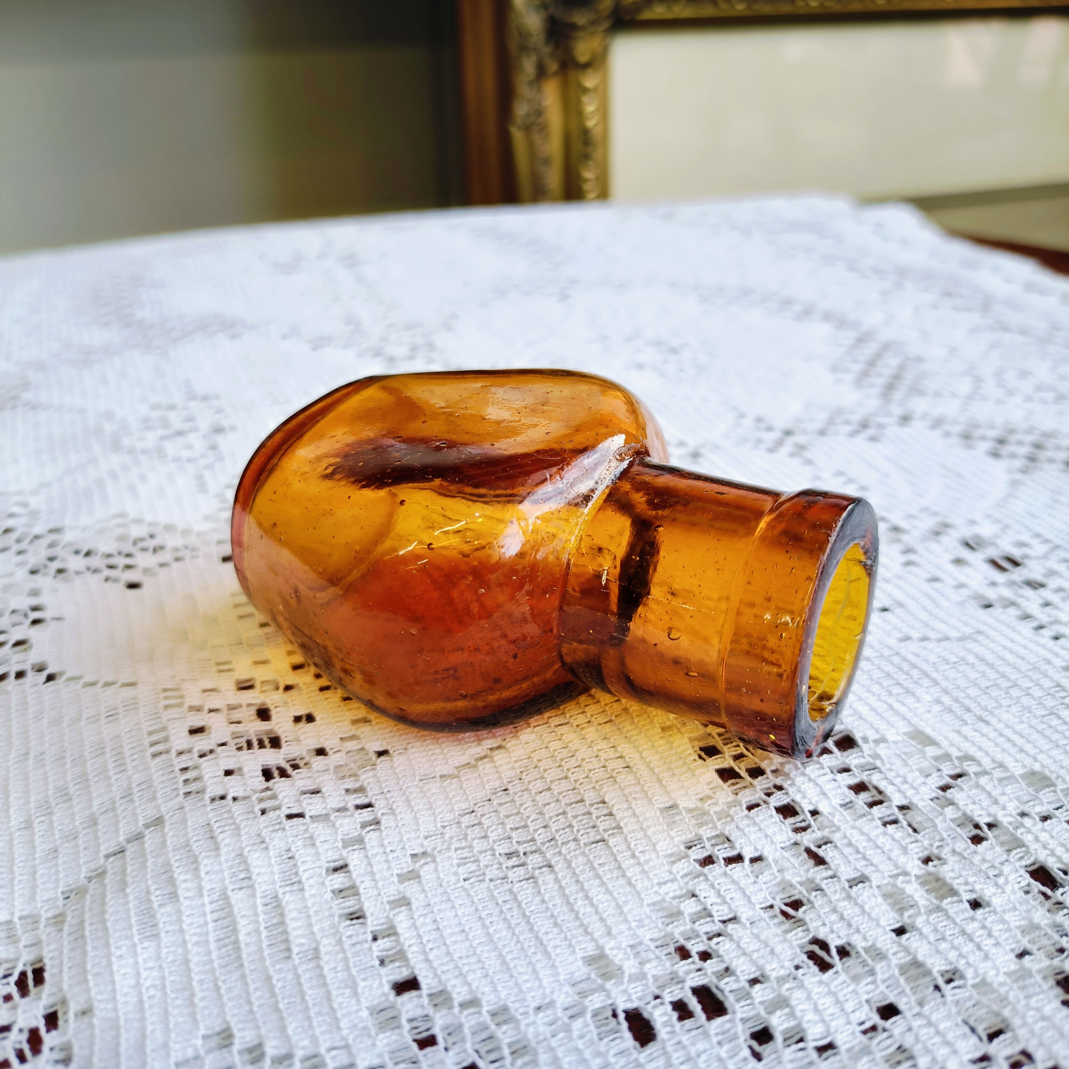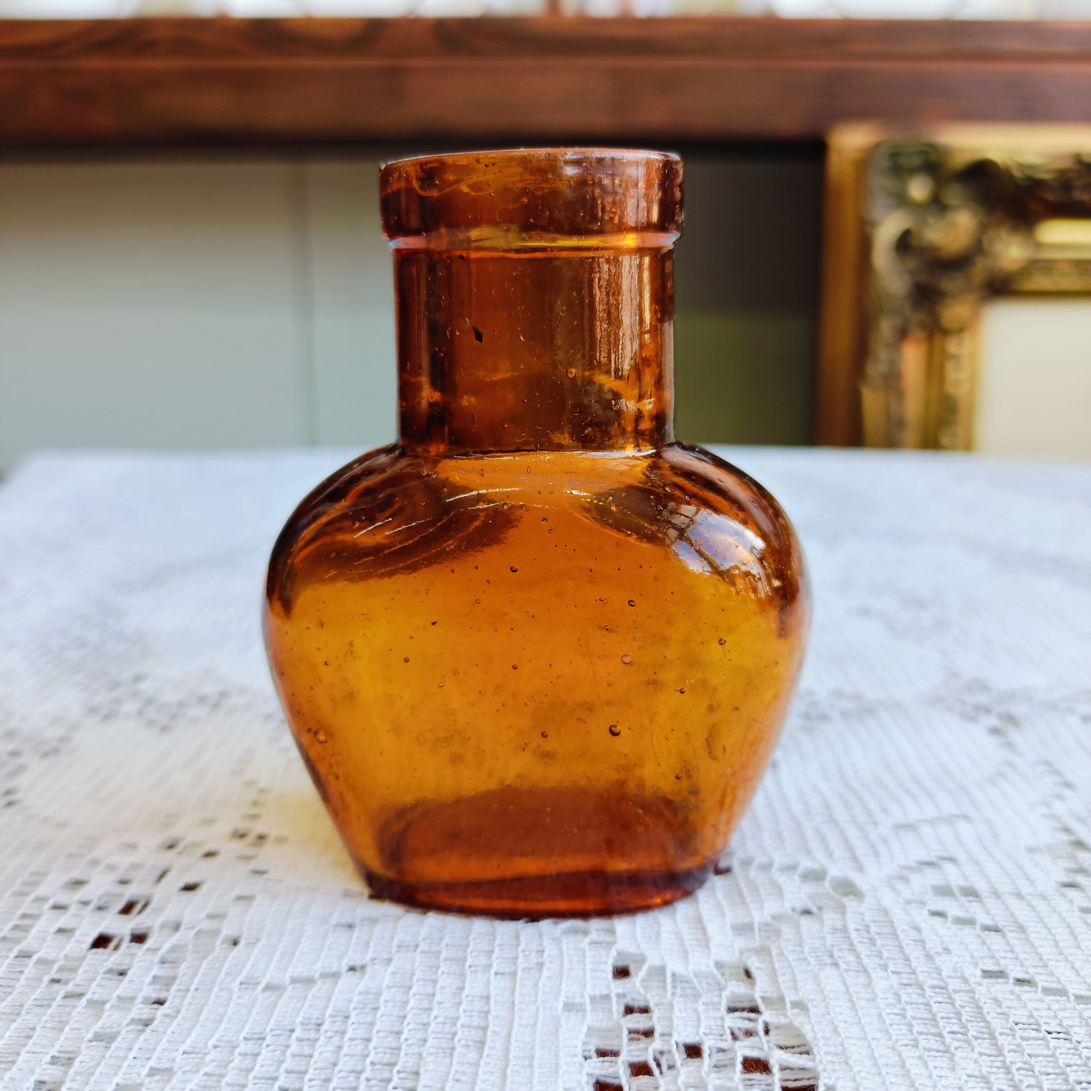 美しい琥珀色のアンティークガラスボトルが入荷しました。