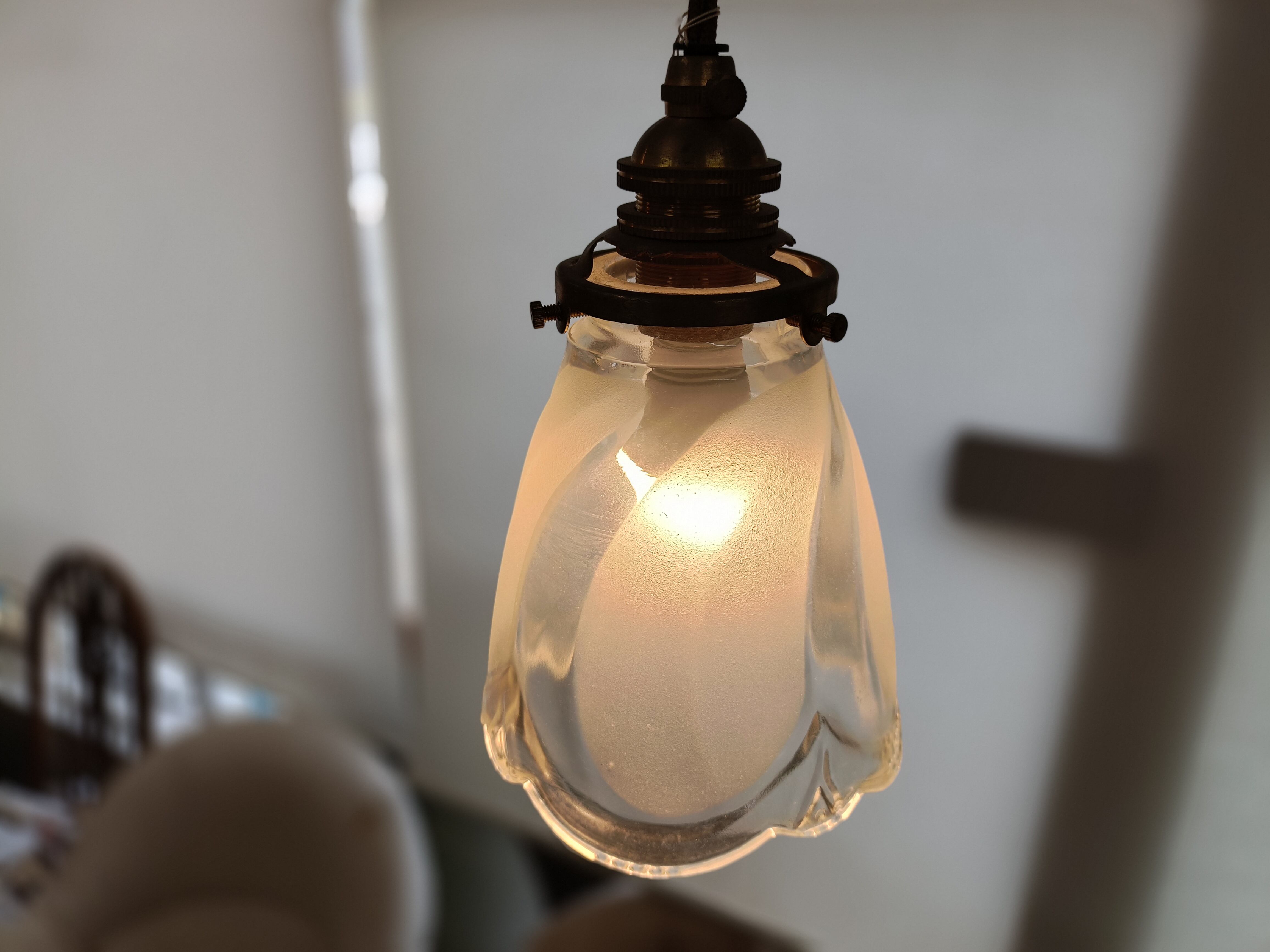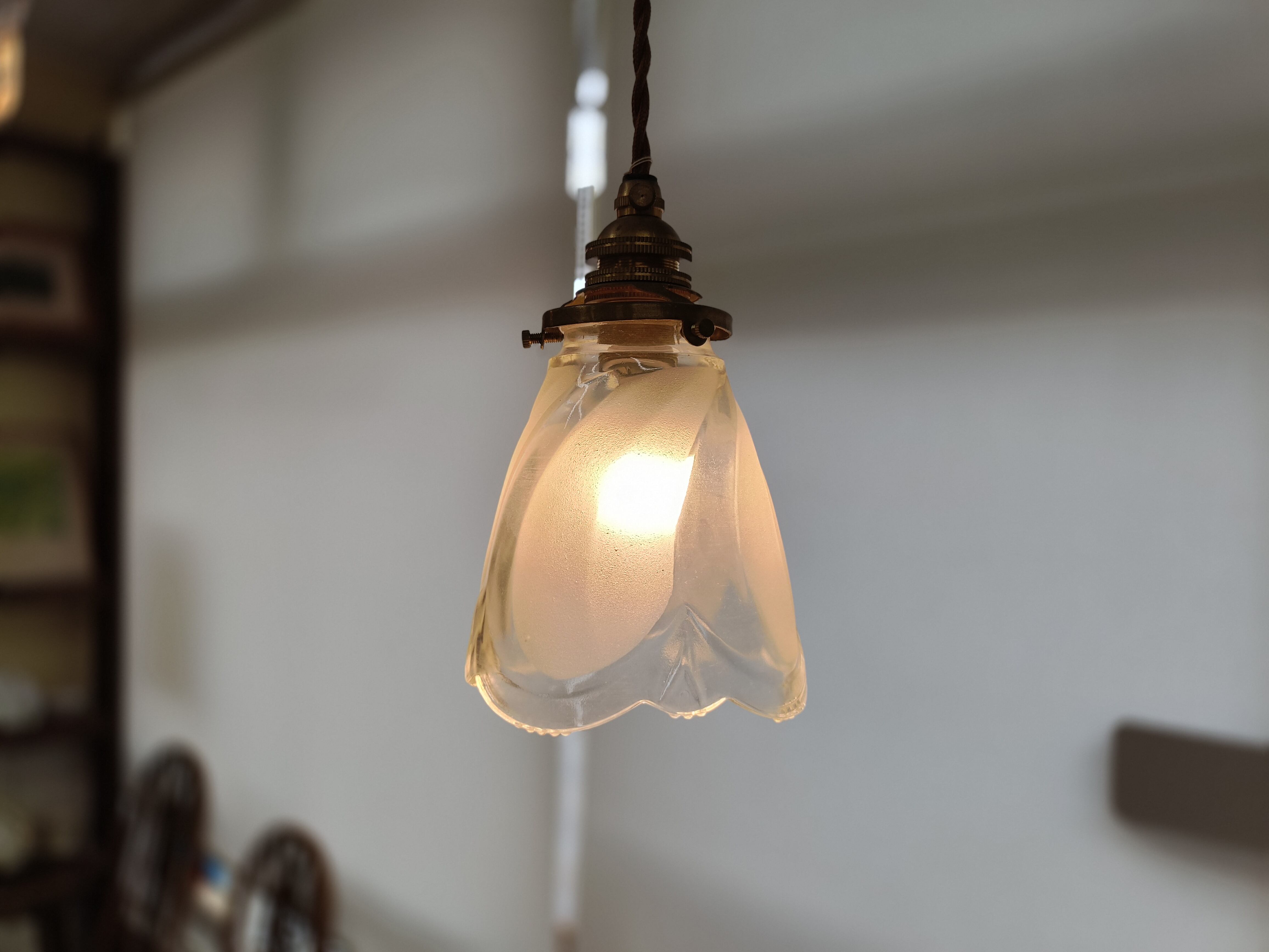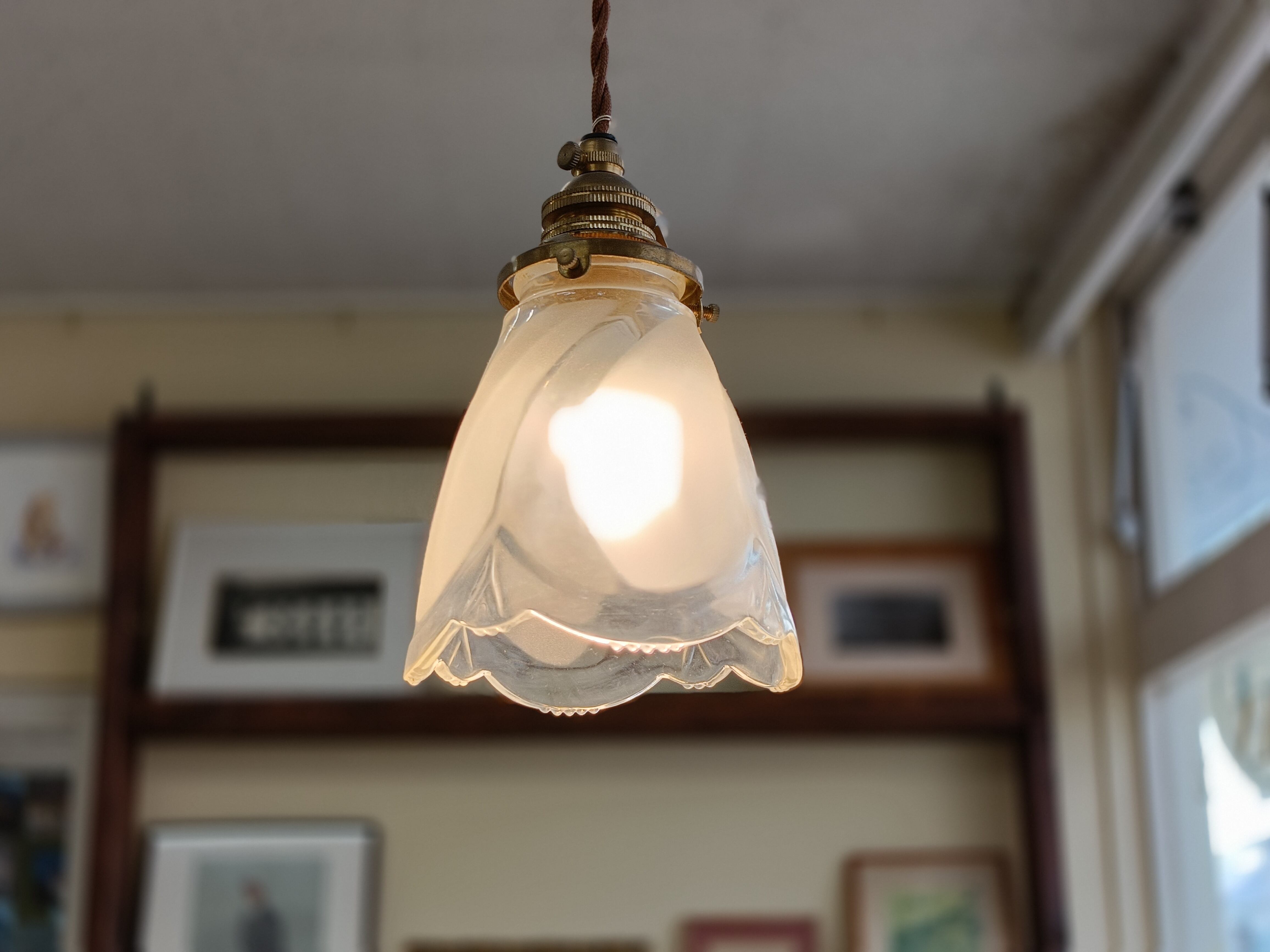 シェード部分はスモークガラスとクリアガラスを組み合わせ、花の様な華やかな縁が特徴的。