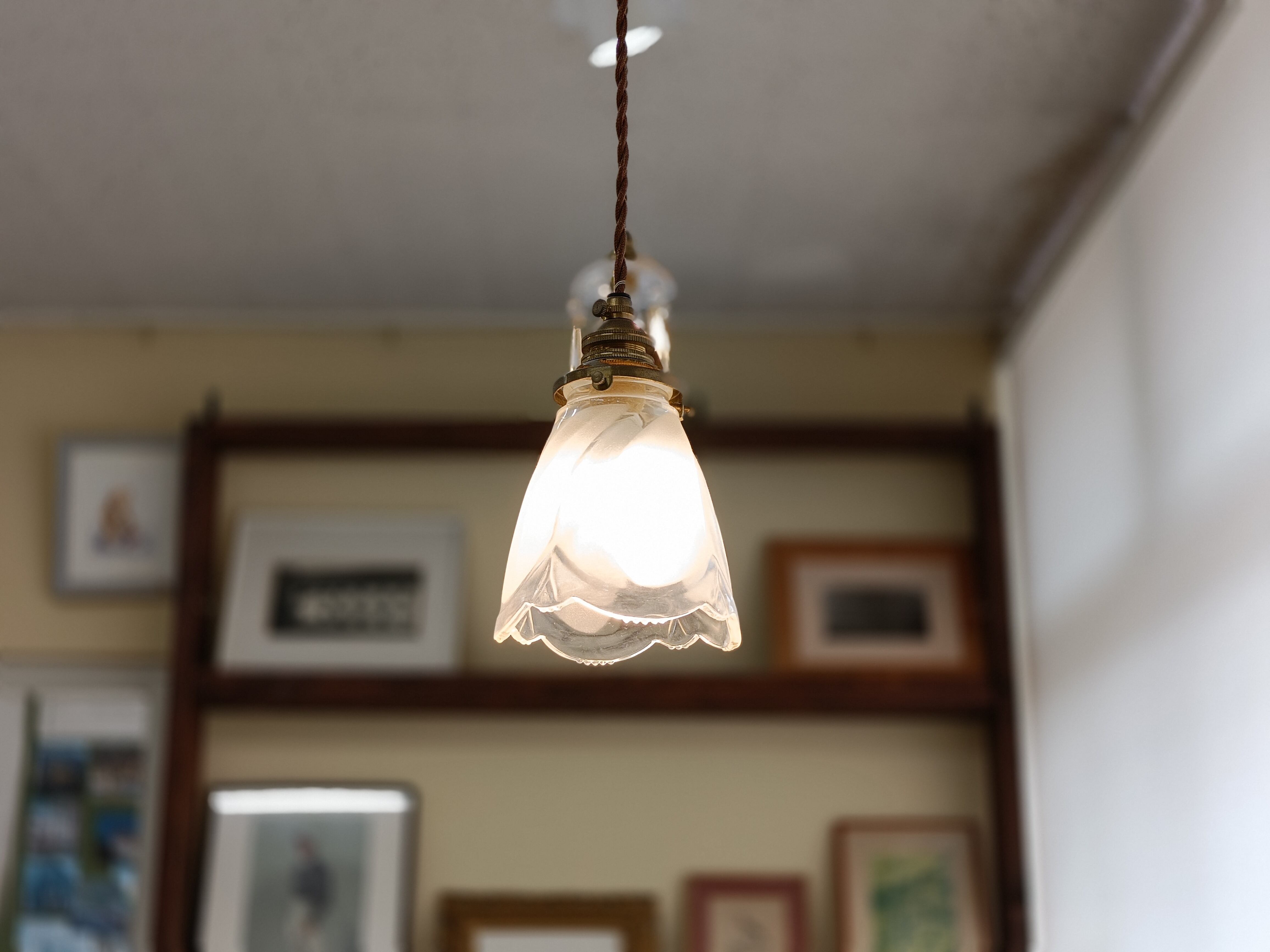 美しいガラスとブラス素材のコンビネーションが魅力的な、1灯のペンダントライト。