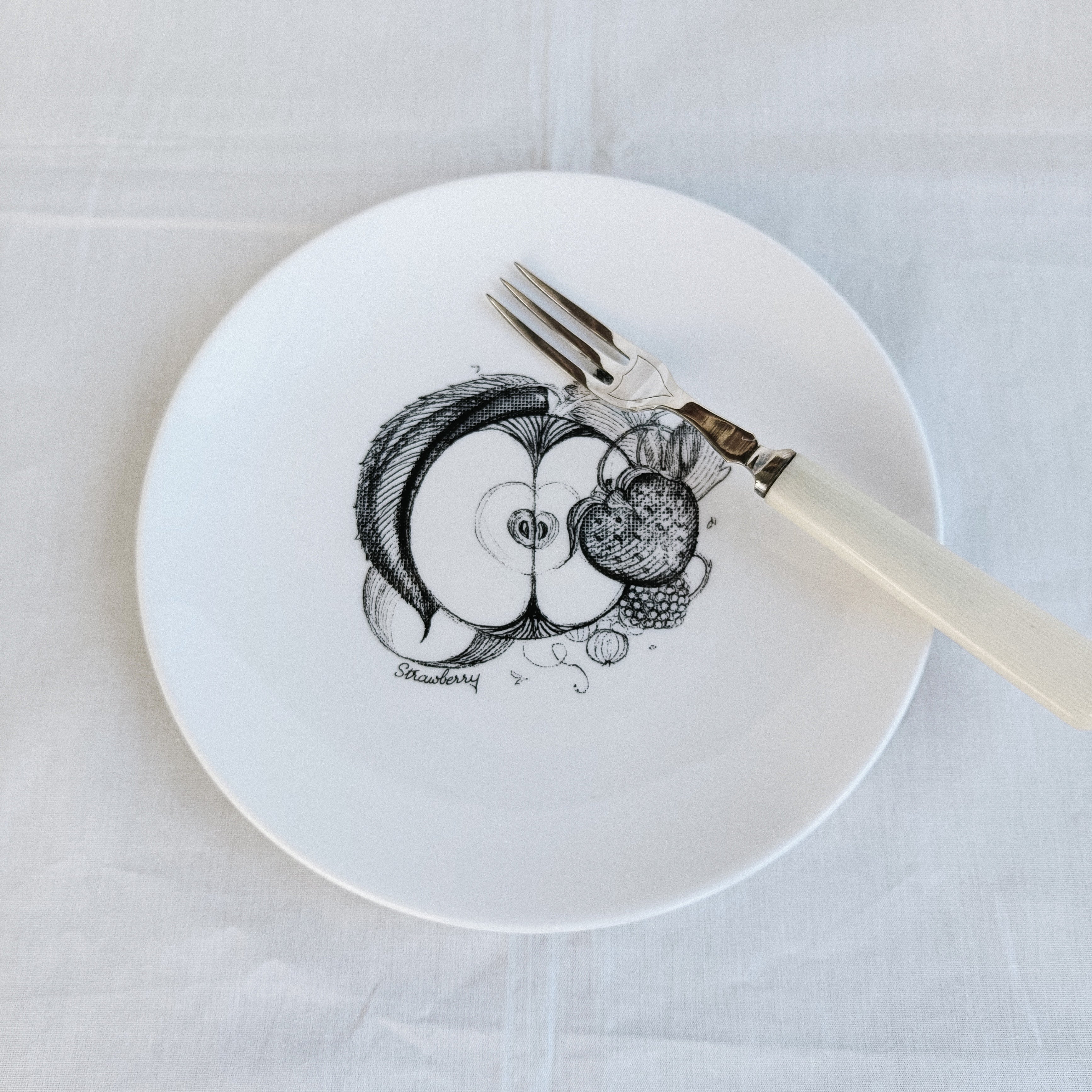 黒一色でデッサン風に描かれたフルーツ。