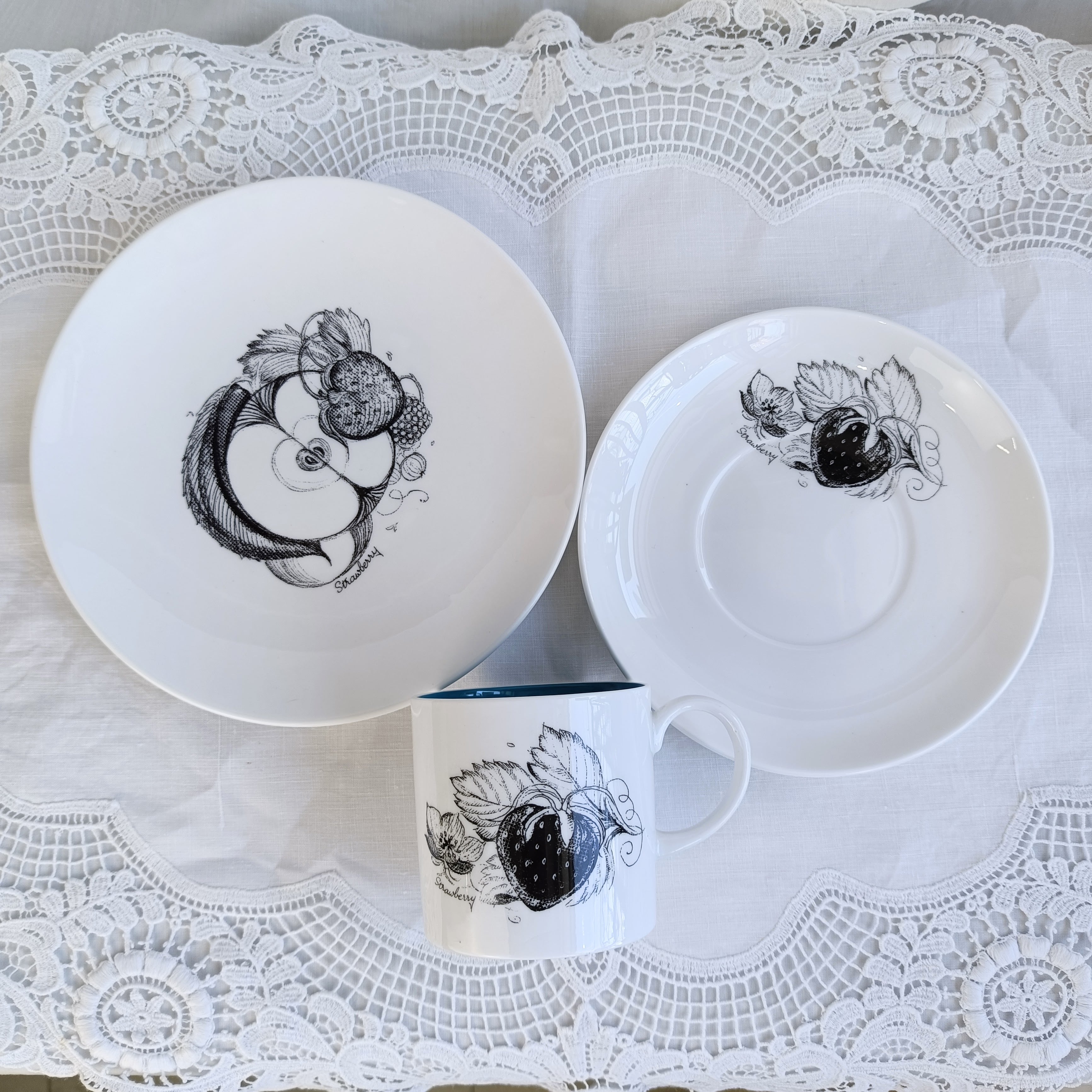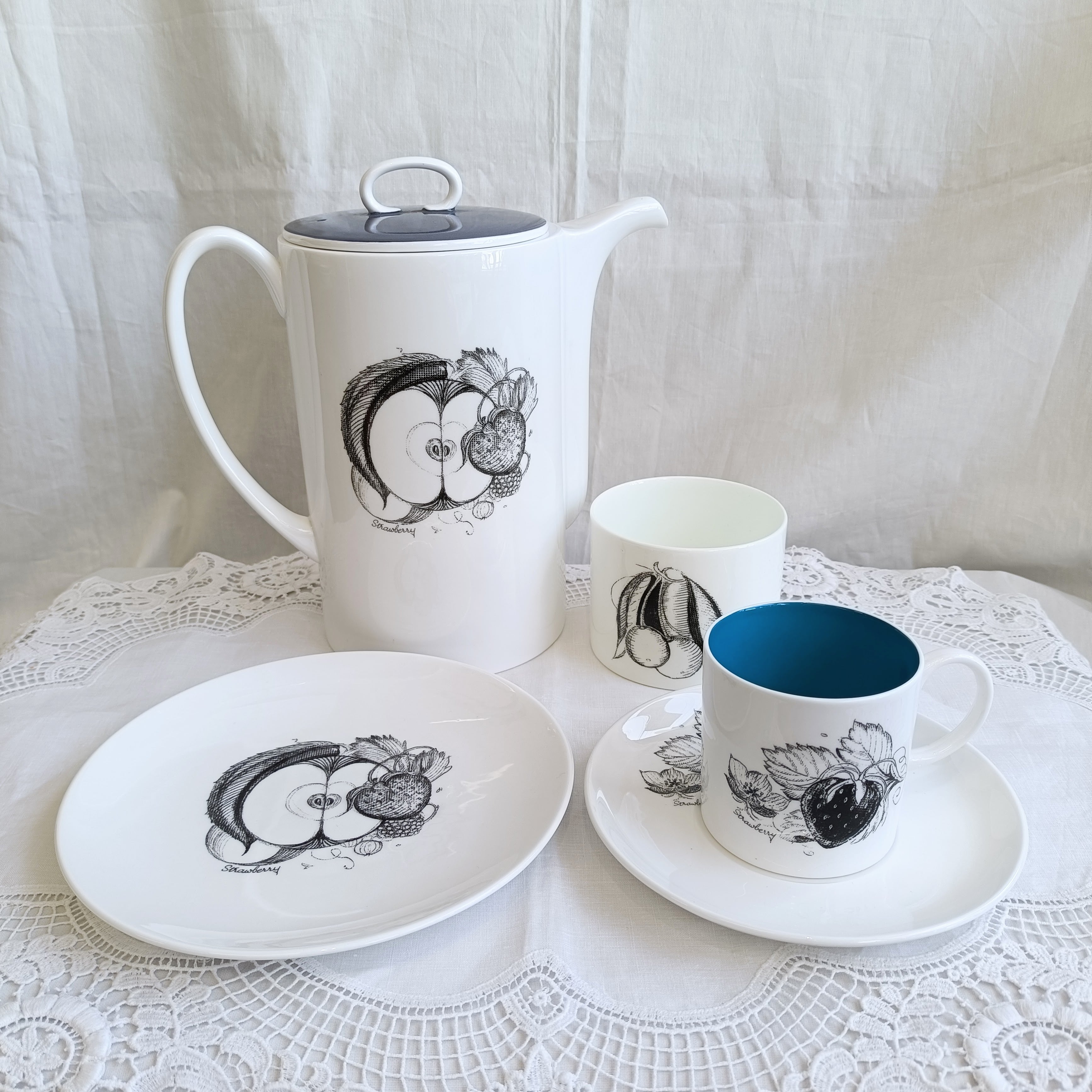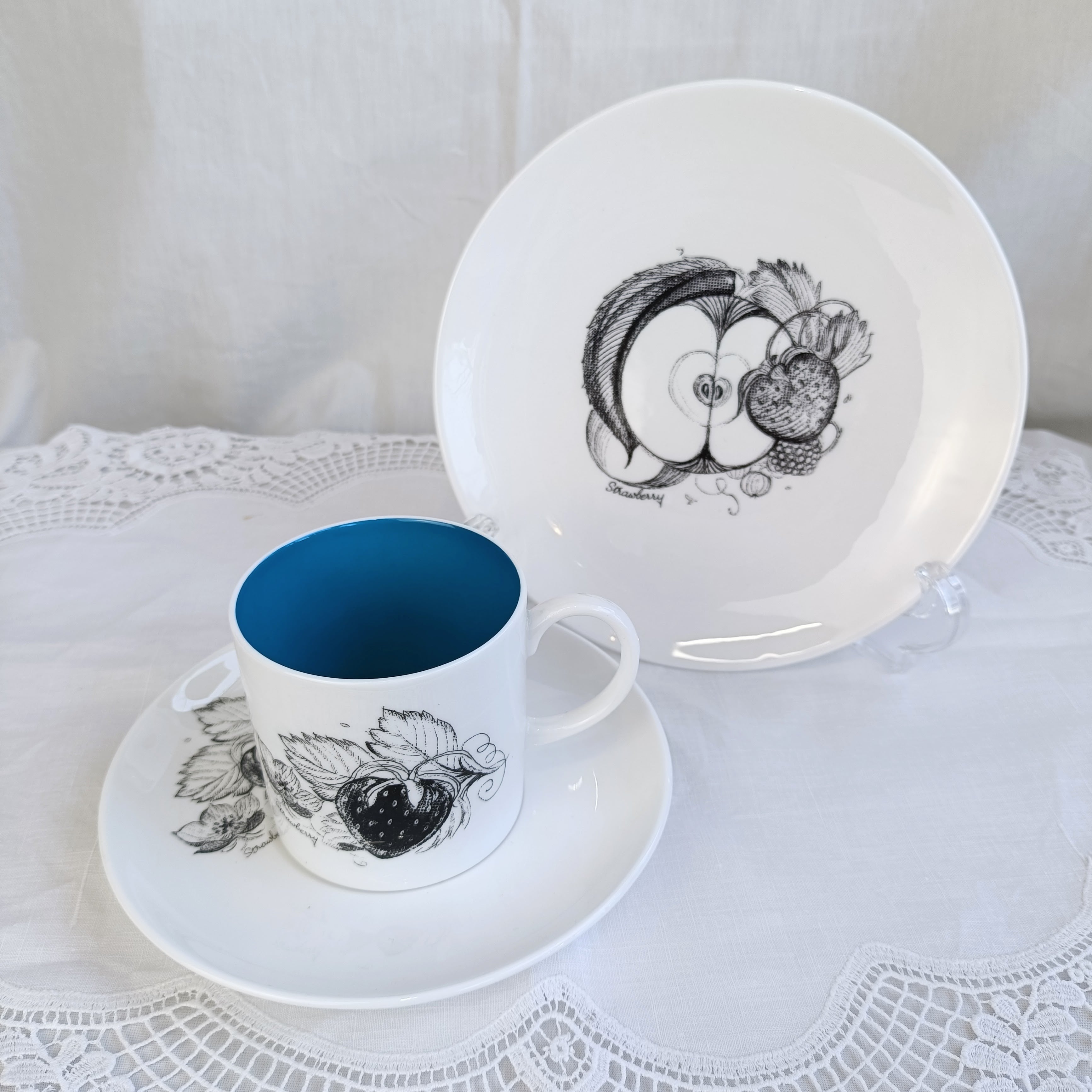 スージークーパー ブラックフルーツ トリオ ストロベリー 1958年 カップ&ソーサー&プレート デミタス イギリス ボーンチャイナ Susie Cooper 2602Y064