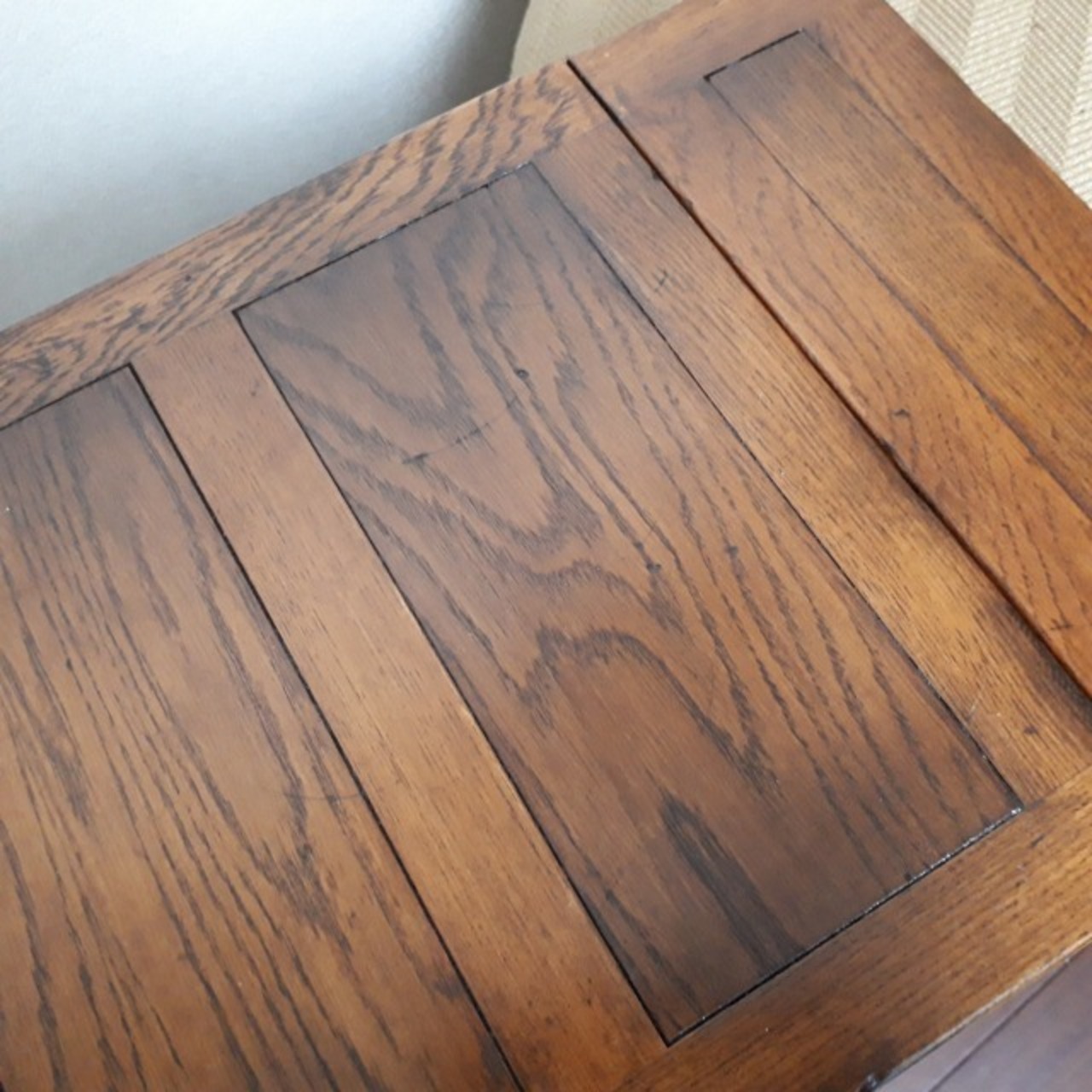 天板は厚みがあり、色は明るめで、木目が綺麗に見えます。