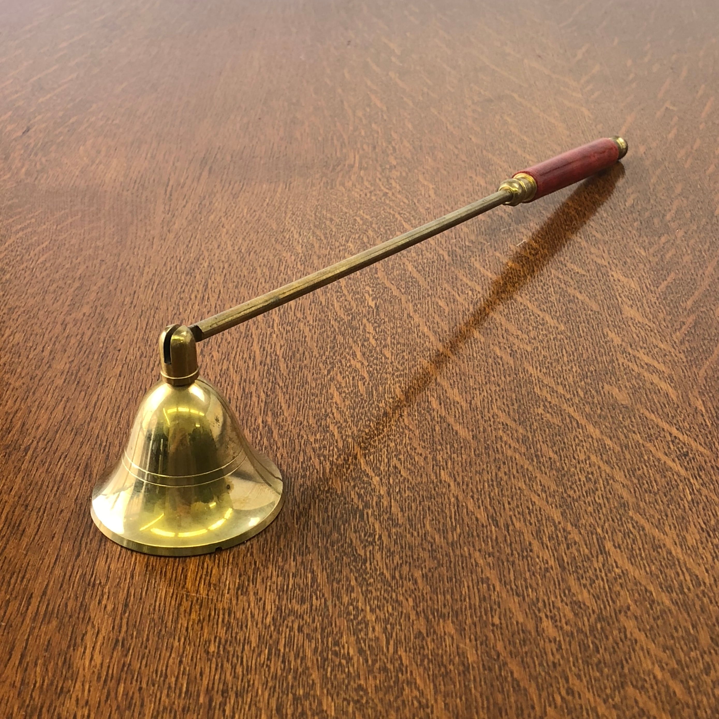 明るいブラスカラーの真鍮製のろうそく消しです。